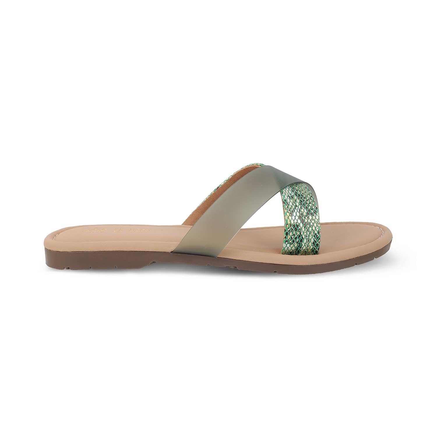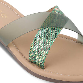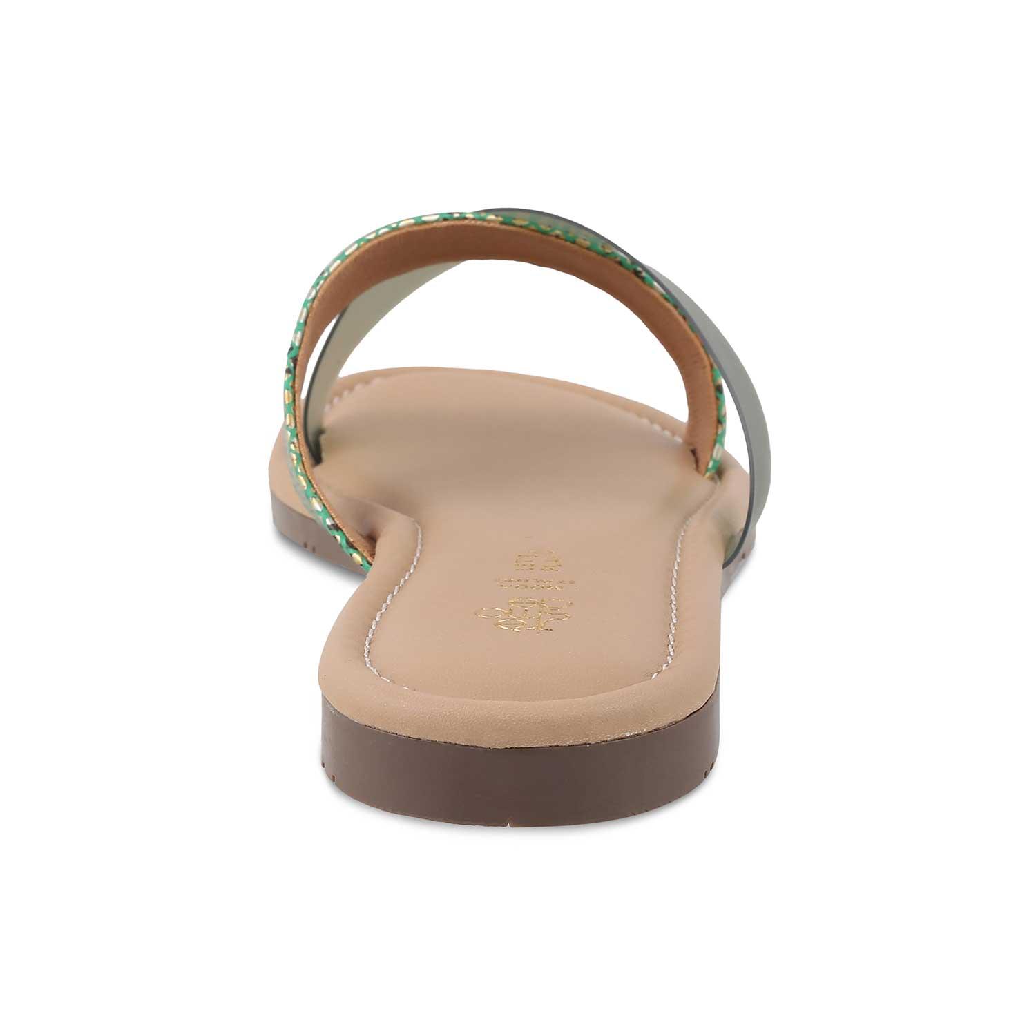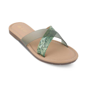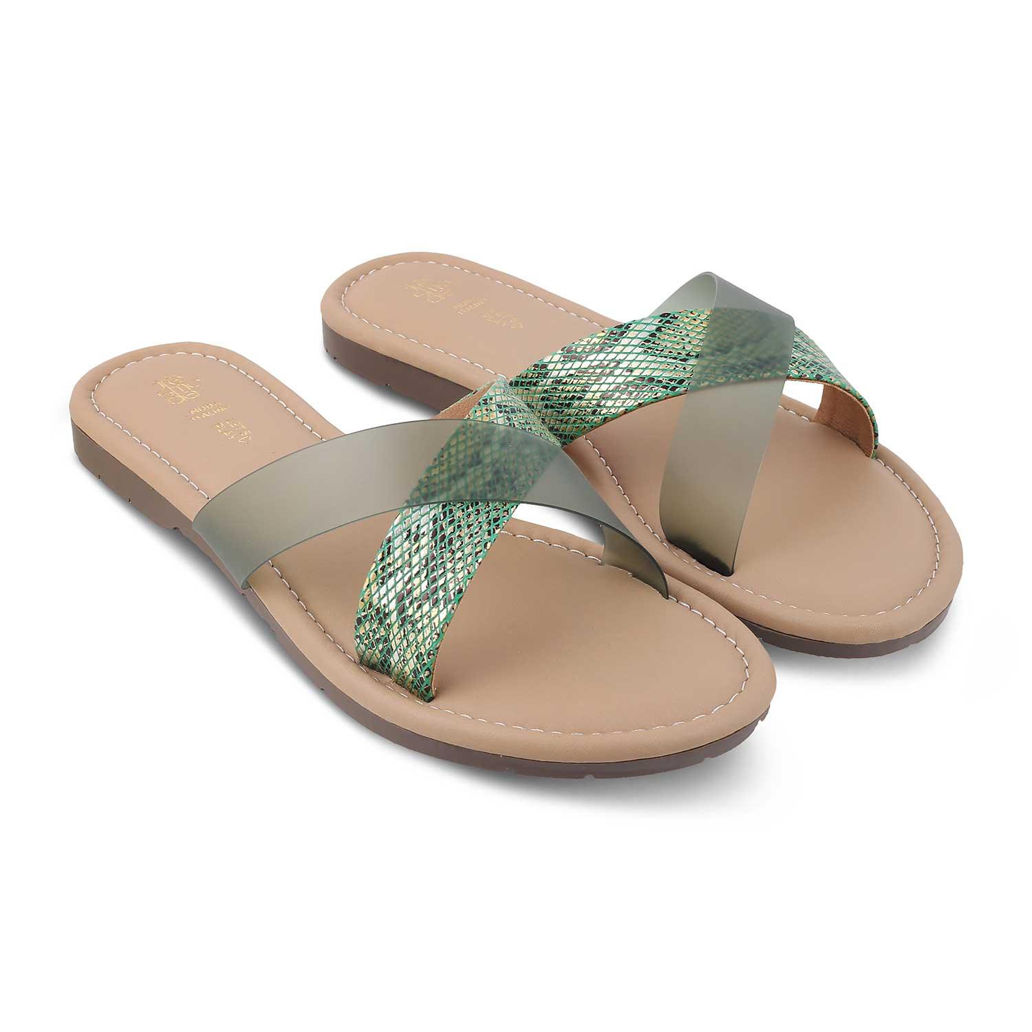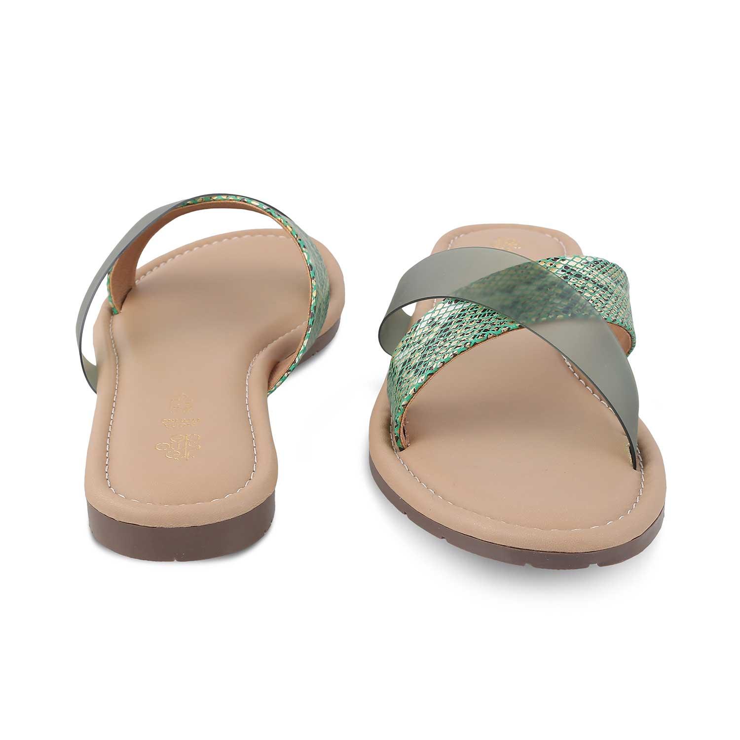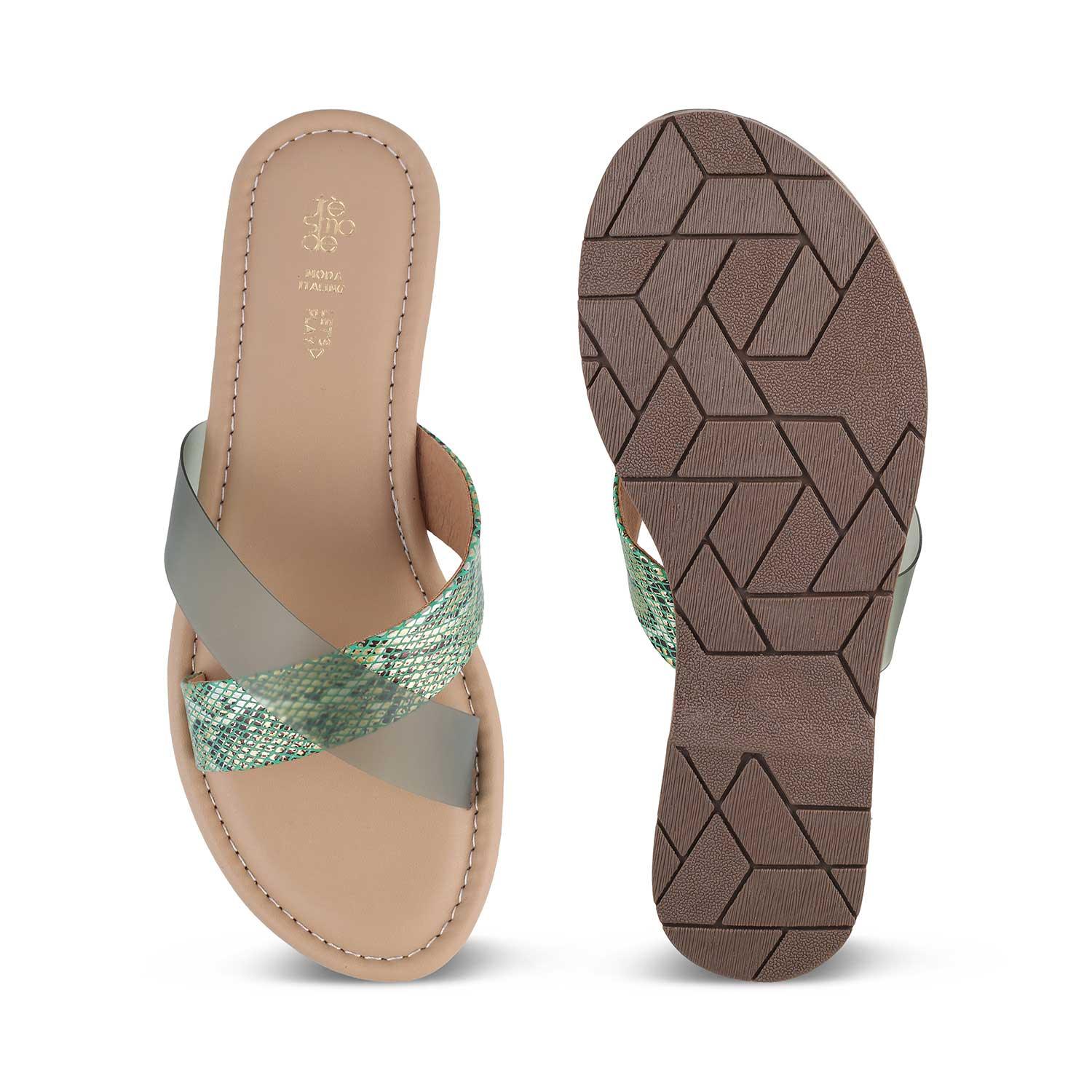 Be the next trend-setter in our Snek green women’s flats. Featuring a snake-textured pattern and transparent upper, this chic pair will add that glam factor to your sense of style. Make heads turn by styling your outfit of the day with these flats. Pair them with a mint green and white polka-dotted top and a white pleated skirt.