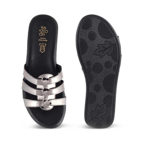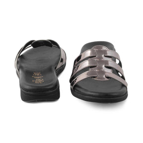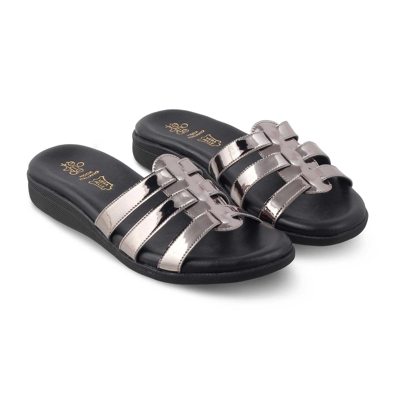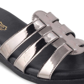 Shine bright in our Strapped pewter women’s flats! This stylish pair is ready to take your everyday style to a whole new level. For a fashionable look, team these flats with a black jumpsuit and add some accessories.