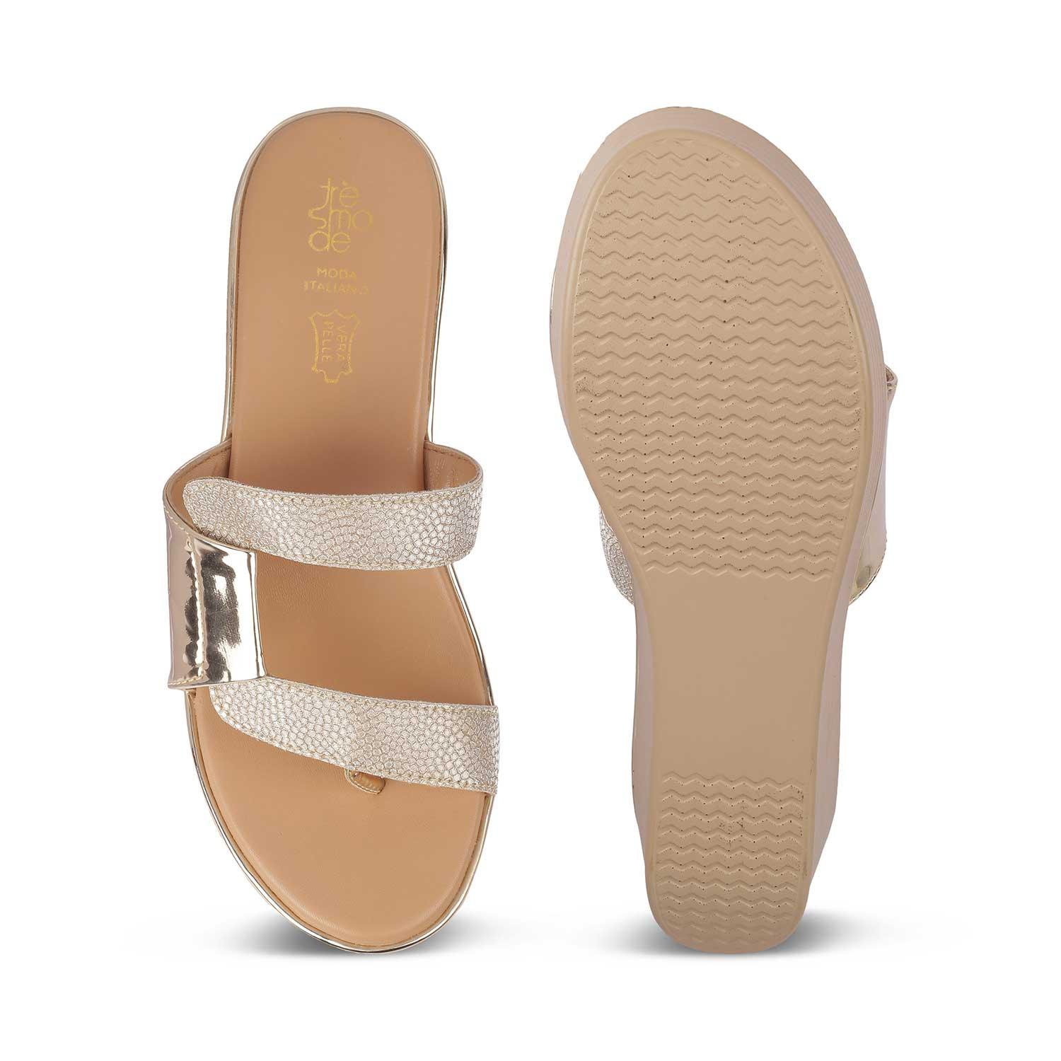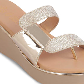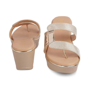 The Tafila Gold Women's Dress Wedge Sandals Tresmode