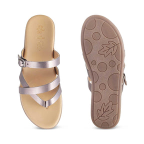 The Tochelle pewter women's flats are famous for adding the perfect amount of glam to your look. This pair of flats for women online features stylish criss-cross straps that look super elegant and stunning. Team this footwear for women with a brown top, black jeans, and a delicate bracelet.
