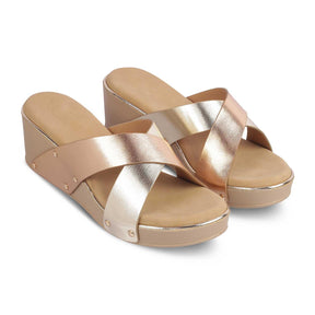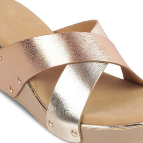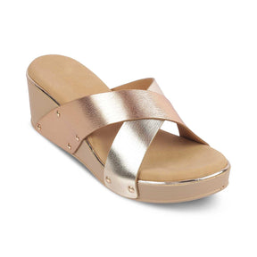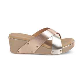 Be the next trend-setter in our Tomas champagne women's wedges. This modern pair is an ultimate party essential, as it features a 2-inch wedge height and a glossy-finished upper to add that style quotient to your overall look. Transition from your weekend brunch to a party night effortlessly by adding these sandals to your collection.