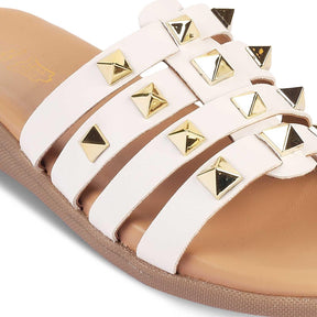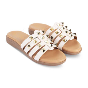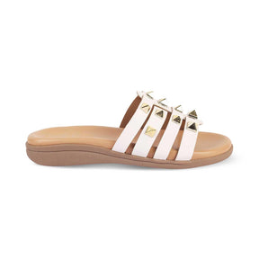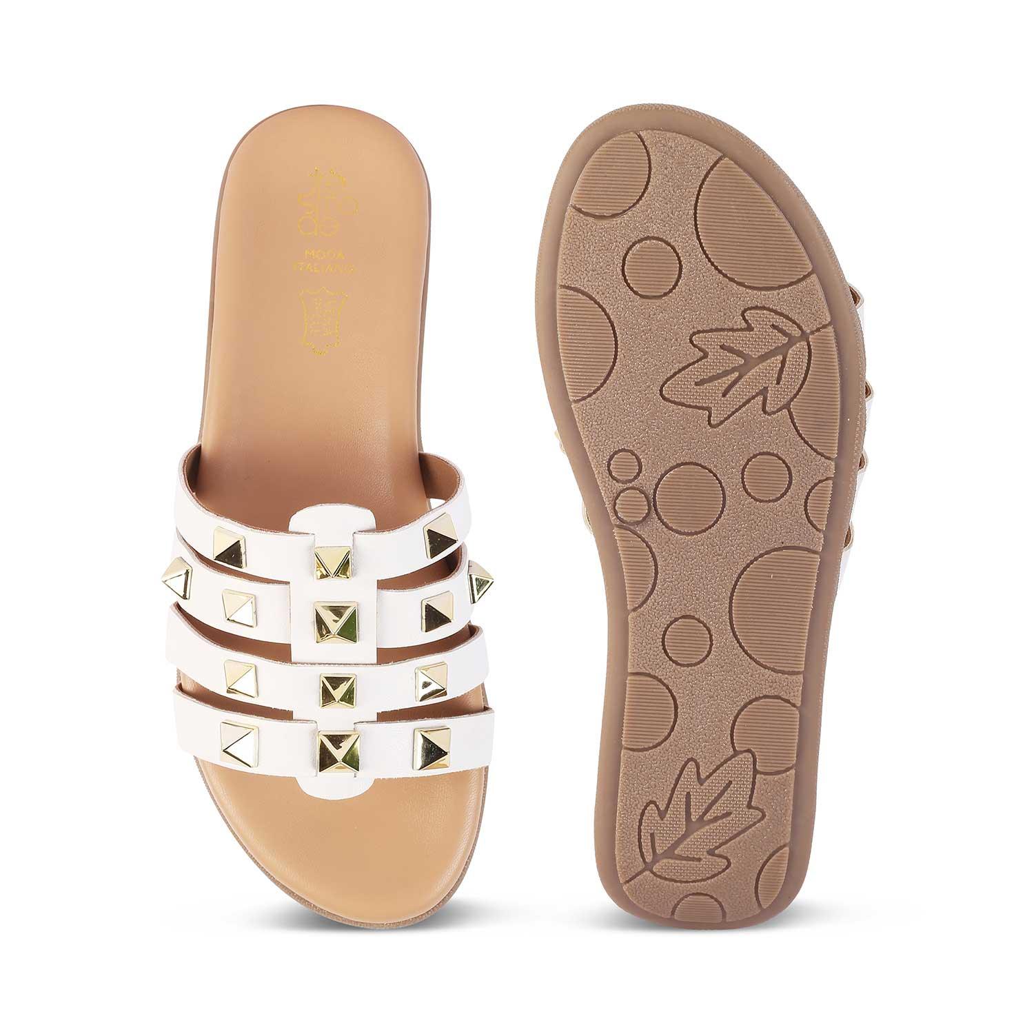 Our Tonrow white flats are famous for striking the perfect balance between style and comfort. Featuring silver studs on the upper and a comfortable cushioned foot-bed, these flats for women are a must-have. Enhance your everyday look by styling this pair with your casual outfits.