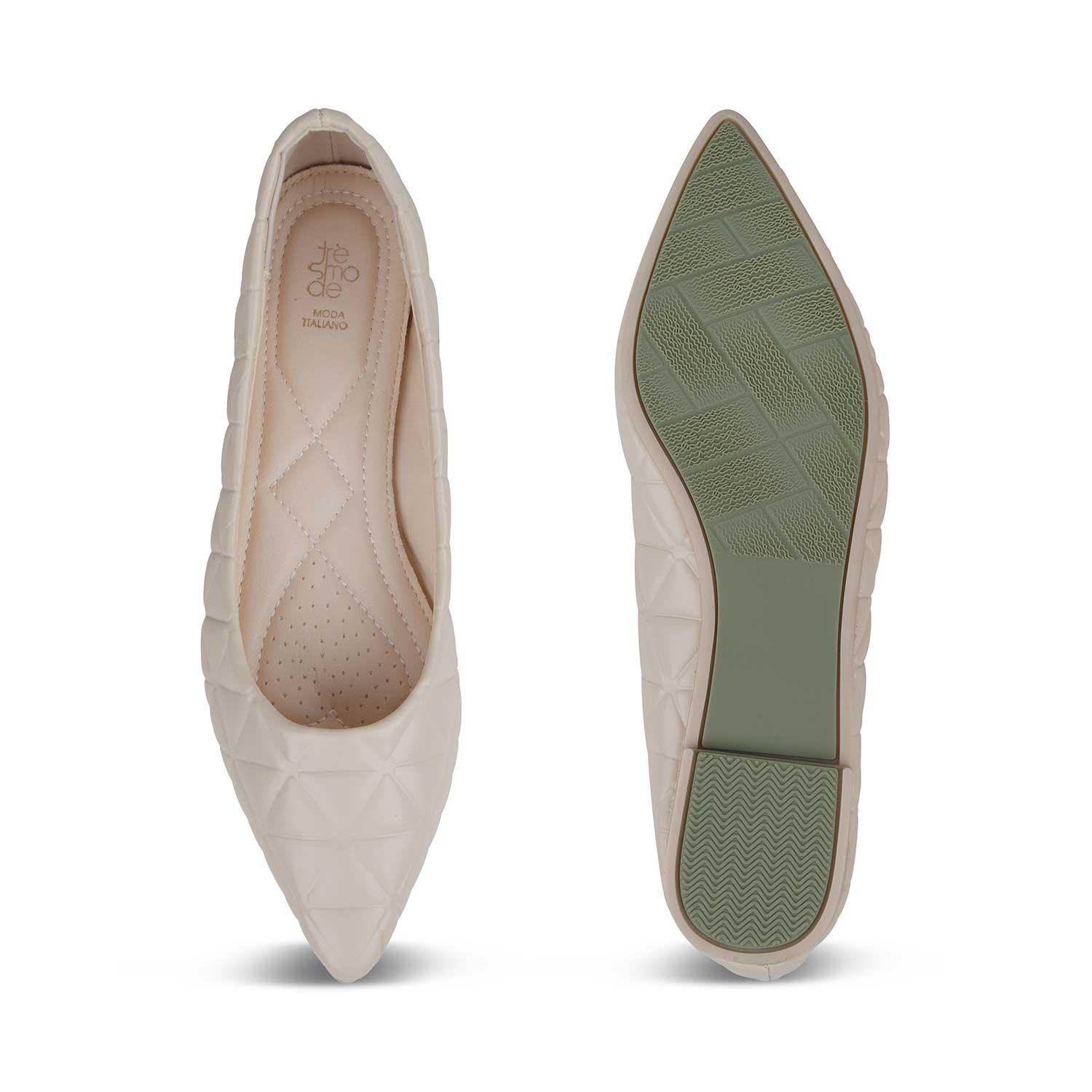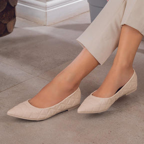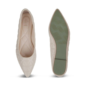 Our Tory beige women’s ballerinas are meant to enhance your sense of style! Created from quilted PU material and featuring a stylish pointed toe-shape, these ballerinas will make a great go-to style for your outings. Make heads turn by pairing these ballerinas with your outfit. Style them with an off-white top and blue pencil pants for a fashion-forward look.
