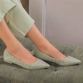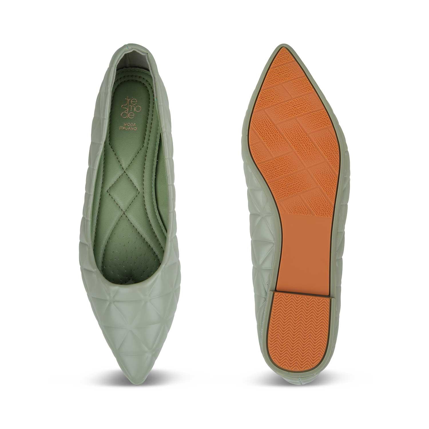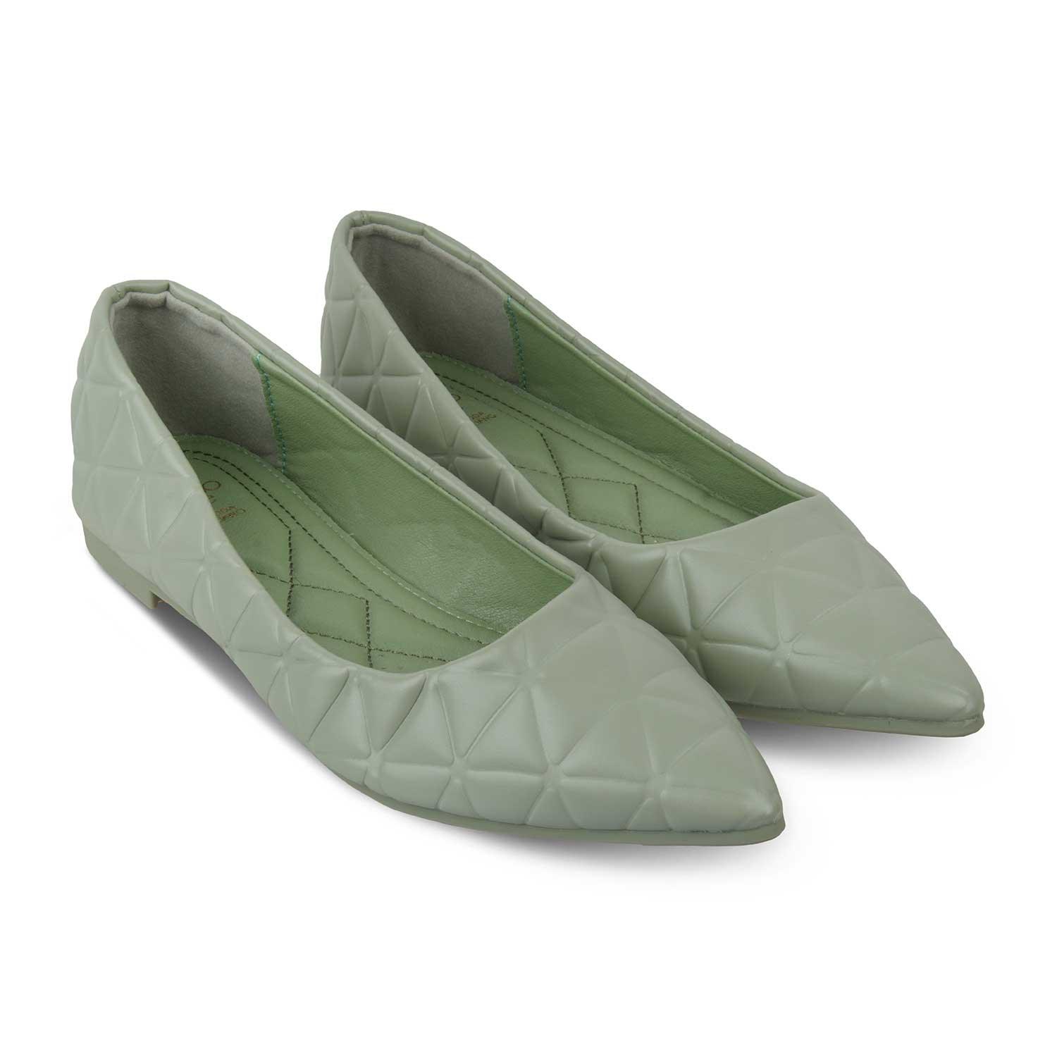 Our Tory green women’s ballerinas are meant to enhance your sense of style! Created from quilted PU material and featuring a stylish pointed toe-shape, these ballerinas will make a great go-to style for your outings. Make heads turn by pairing these ballerinas with your outfit. Style them with a pastel green dress and golden hoop earrings for a party.