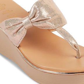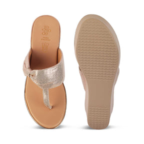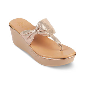 Our Tryst champagne women's wedges will add an instant lift to your entire look. Featuring a 2.5-inch wedge height and a chic design, these wedge sandals are ideal for your Indo-western looks. Get ready to leave a lasting style impression by adding these sandals to your collection. Enhance your look by styling your outfit with this pair.