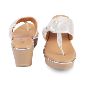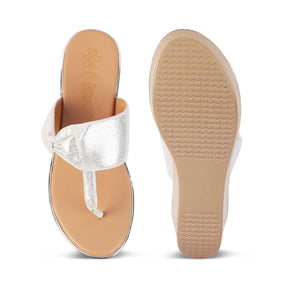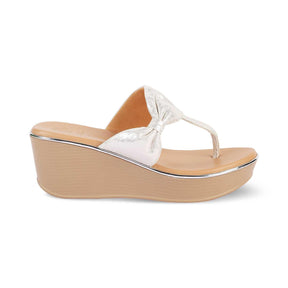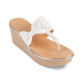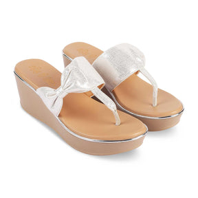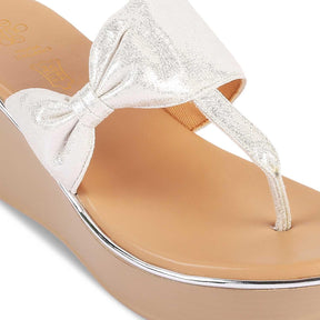 Our Tryst silver women's wedges will add an instant lift to your entire look. Featuring a 2.5-inch wedge height and a chic design, these wedge sandals are ideal for your Indo-western looks. Get ready to leave a lasting style impression by adding these sandals to your collection. Enhance your look by styling your outfit with this pair.