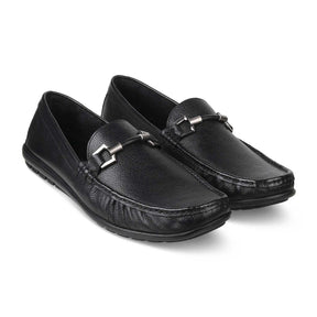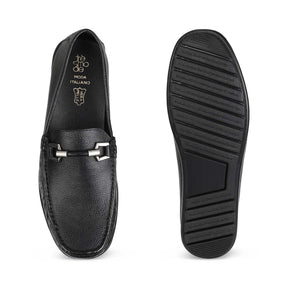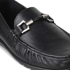 Show off your style in the Uffizi black leather loafers for men. This sophisticated pair is modern and elegant. You can wear them all-day long. For an effortless exceptional look, pair these loafer shoes for men with a white shirt and black trousers.