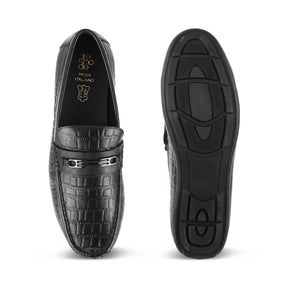 Introducing our York black men’s leather driving loafers! Elevate your style by adding these men's loafer shoes to your wardrobe. Ace your look by pairing these driving loafers with a crisp white tailored shirt and black trousers..