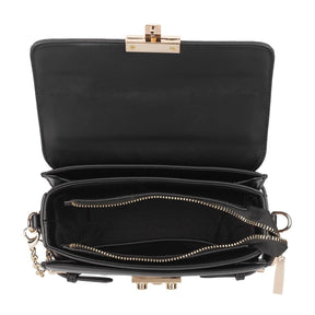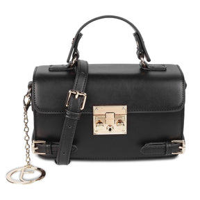 Subtle yet stylish is what defines this Nio Black women's sling bag appropriately! Made out of vegan leather handbags india, this bag has been consciously created with meticulous detailing. With a sophisticated golden buckle and a classic white colour, this bag blends fashion and practicality. Get ready to flaunt your look by styling this bag with your favourite outfit for a weekend outing.