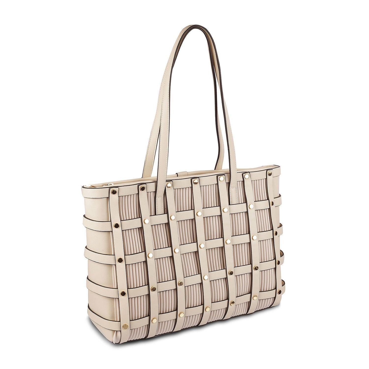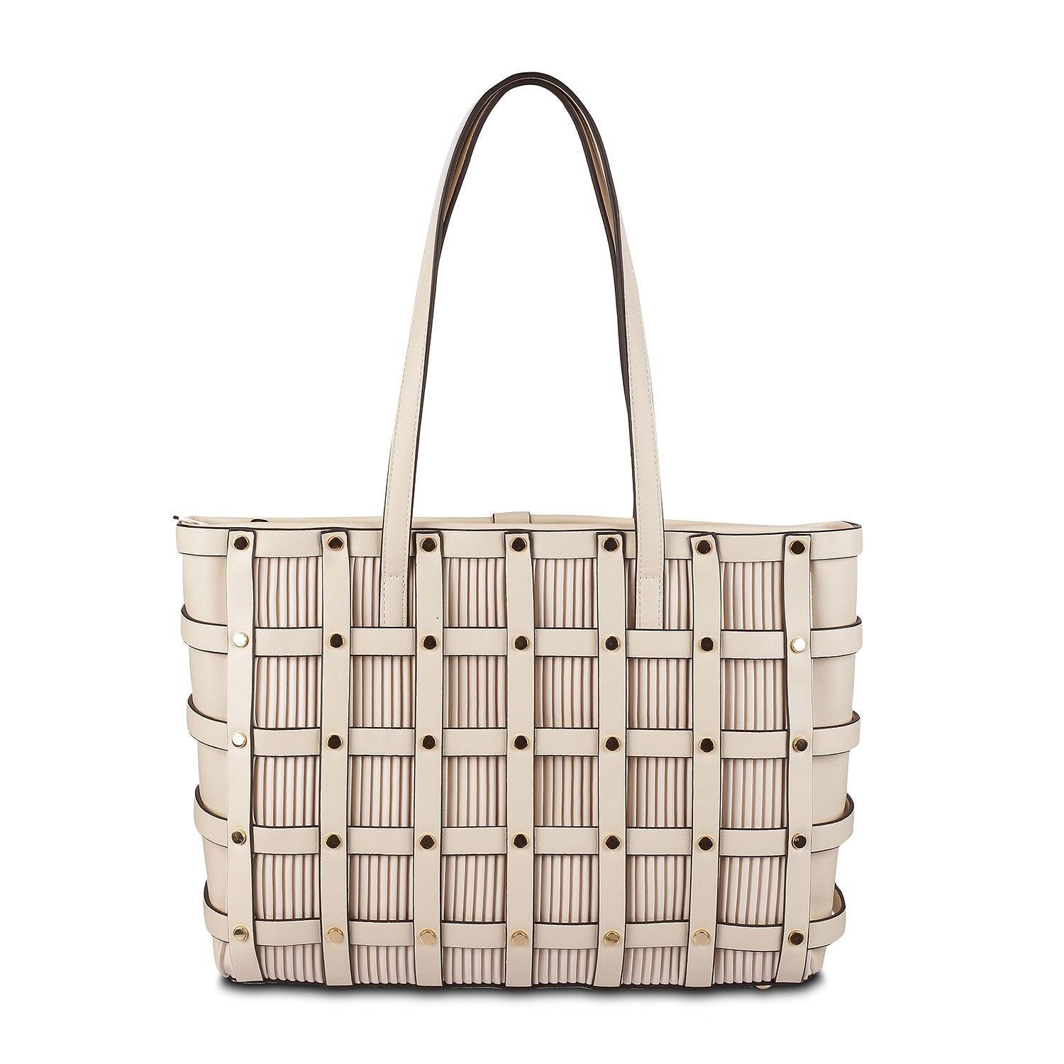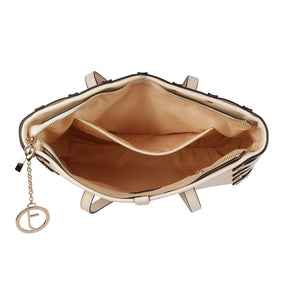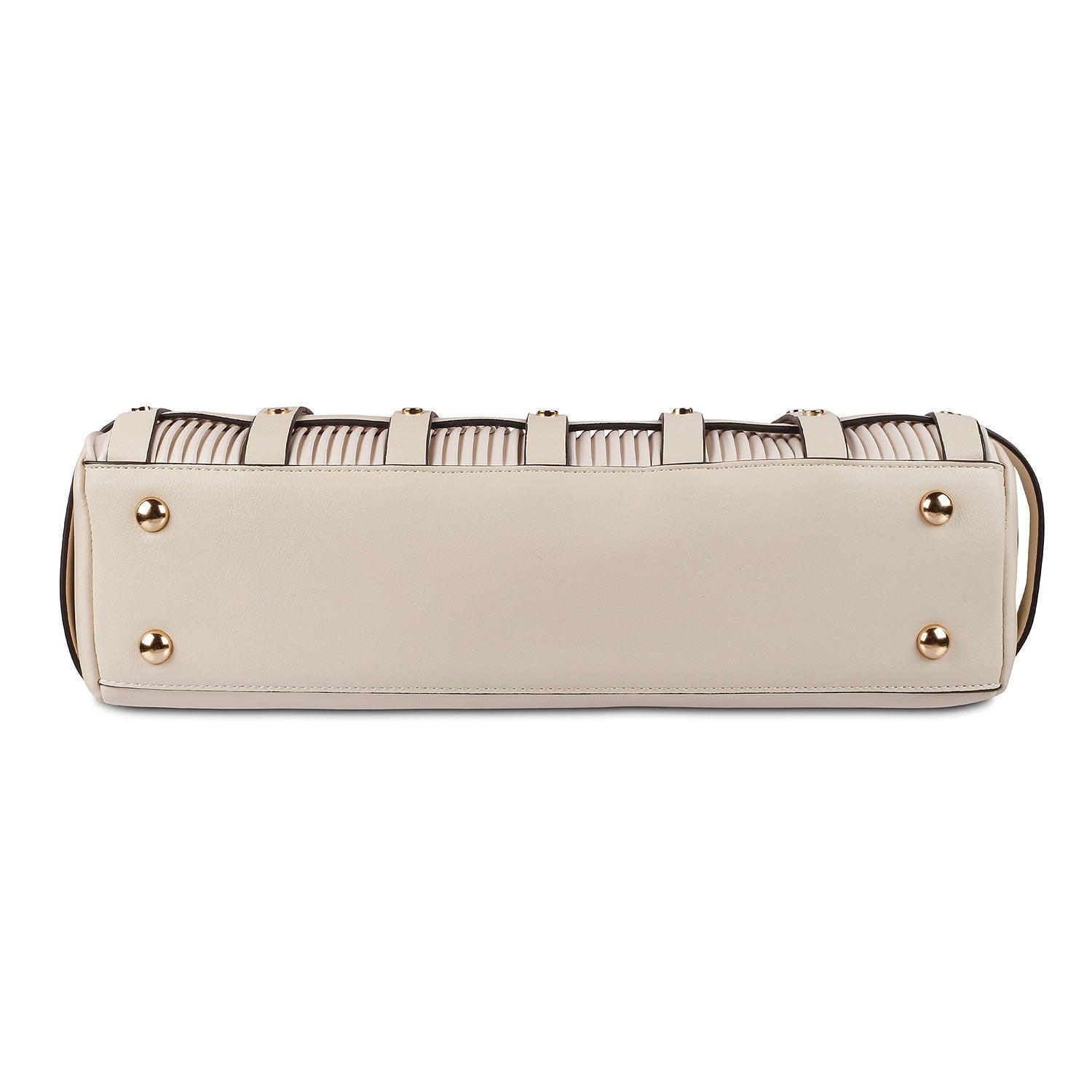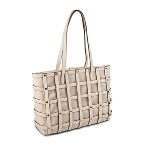 Put your everyday look together and don't forget to carry our Yorky beige womens handbag with you! Made out of vegan leather handbags India, this bag is sustainable and environment-conscious, both. With a chic design and golden studs on the upper, this super stylish bag is spacious enough for you to carry your laptop in it and other things as well. Let your style do the talking when you pair this bag with your daily outfit for a coffee meet-up with your girl gang. Make a fashion statement with this bag by your side!