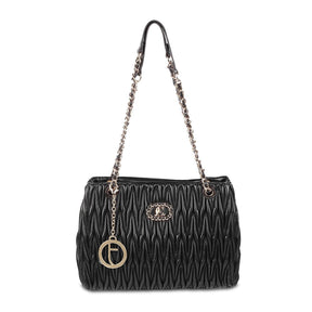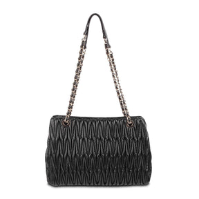 Whether you are going for a casual brunch or a party night, this Wes black women's sling bag is ready to accompany you. Created from vegan leather handbags india, this bag is the ultimate must-have. With a trendy wrinkled pattern, 2 pockets inside and a stylish strap, this bag is all you need to make heads turn. Enjoy the comfort and versatility of this two-way bag, it can be carried as a sling or a shoulder bag, both. Get ready to receive many compliments for your bag choice. Keep up with your classic look by carrying a black sling bag with you!