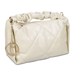 Enhance your everyday style with our Zeal beige casual sling bag. This bag has been carefully created from vegan leather handbags India. Made for those women who like to keep it minimal, this women's sling bag is a must-have to store your daily essentials perfectly. With a criss-cross design and a ruffled handle, this bag will upgrade your collection of bags and how! This bag has a detachable strap, which makes it easier to carry it in two-ways, as a sling or a shoulder bag. Get all set for that shopping day out by styling this bag with your dress.