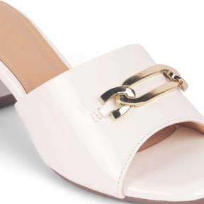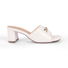 Our Adare white block heel sandals for women are charming and fashion-forward. With a 2.5-inch sturdy block heel and a chic metallic buckle on the upper, these block heels for women are here to take your look to a whole new level. This pair has been created from vegan-friendly material and has a TPR sole for utmost comfort. For a movie night, pair your dress with these sandals to step up your style game.
