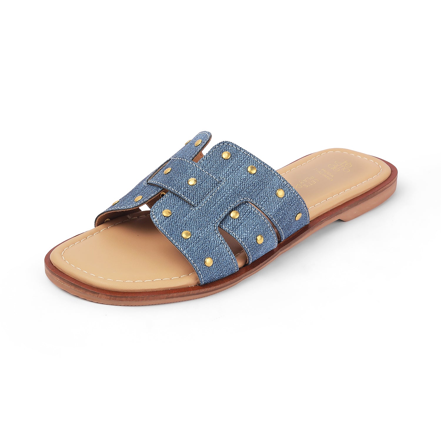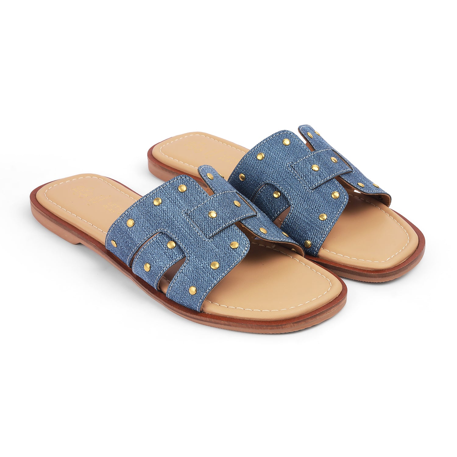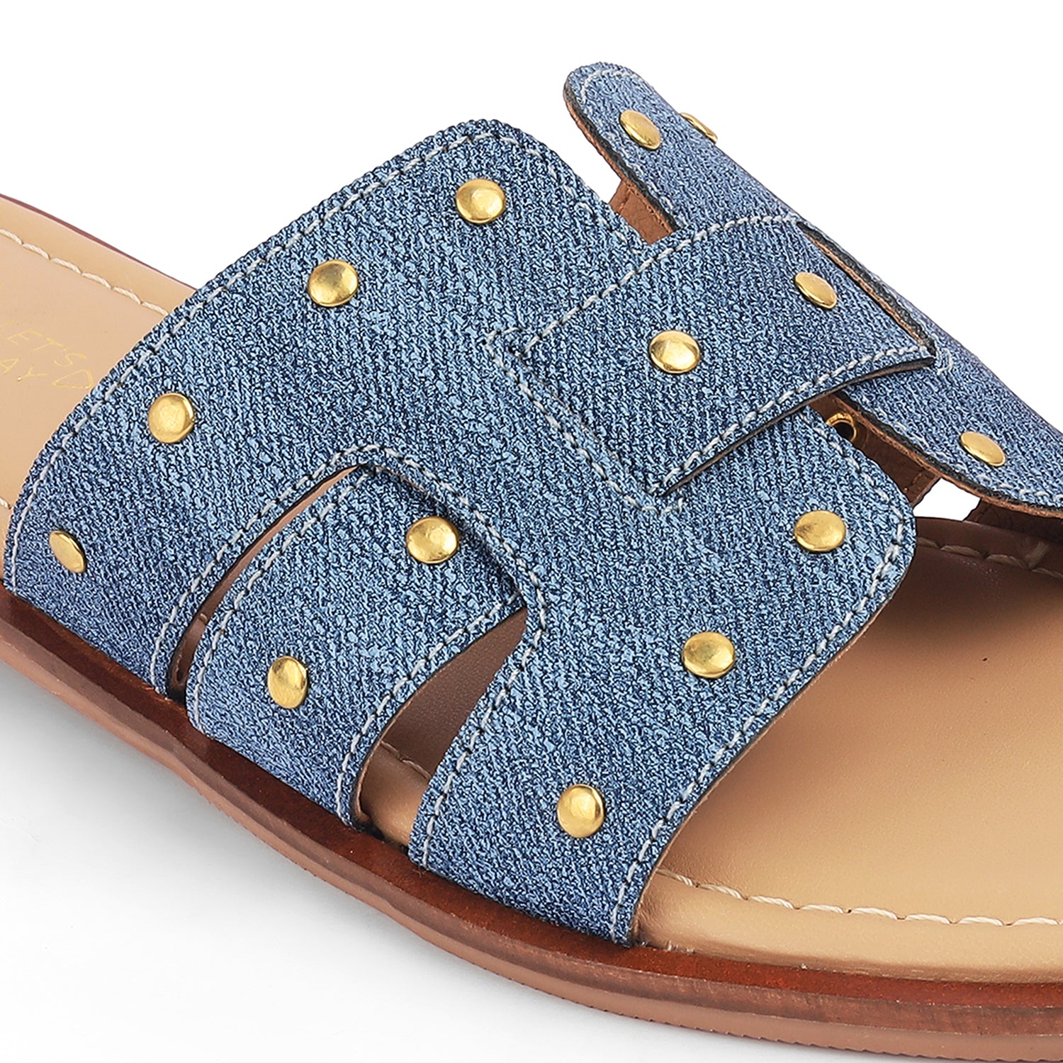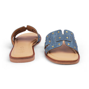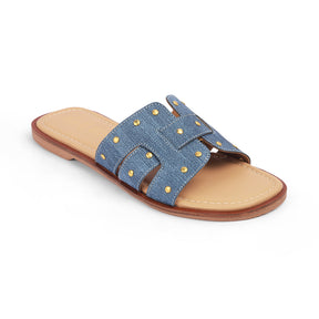 Ace your casual style game with none other than our Aen blue flats for women. This premium pair features trendy golden studs and has been made out of high-quality vegan-friendly material. These versatile flats strike the perfect balance between comfort, elegance, and the modern trends. If you are heading out for a shopping spree, pair these flats with a cute dress and if you are going for a casual outing, keep it simple.