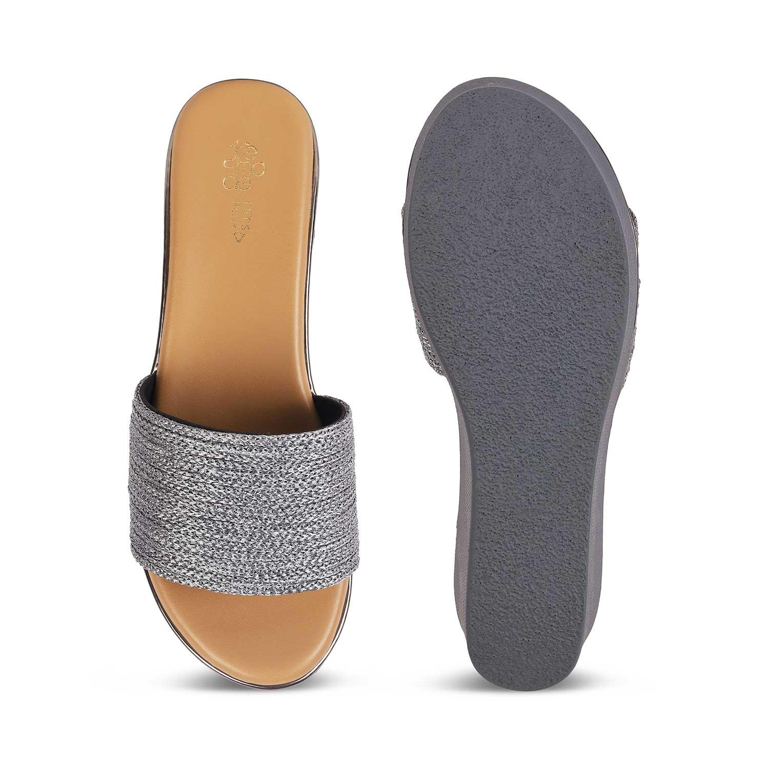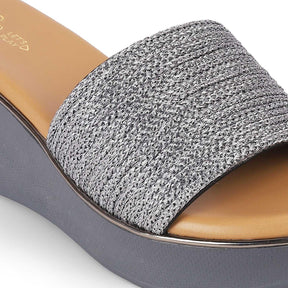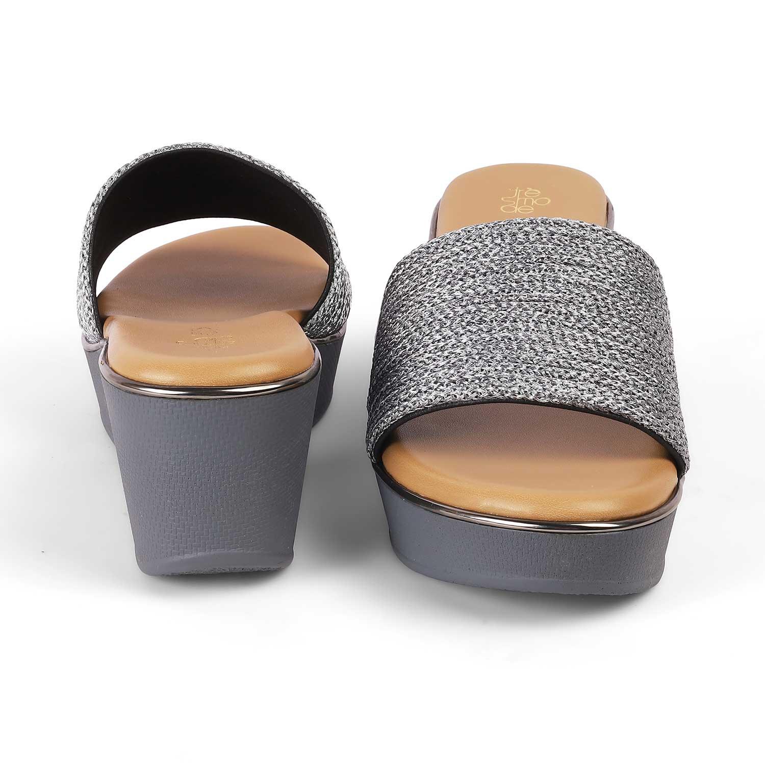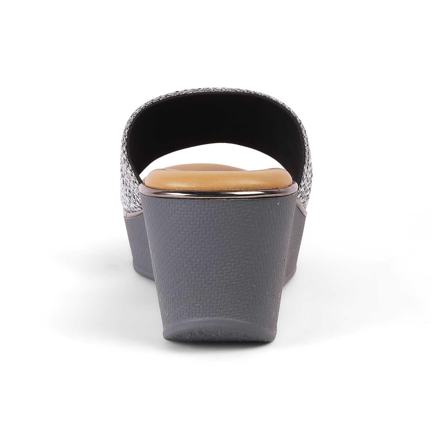 Add a touch of elegance to your look with our Alake pewter women’s wedges. This vegan-friendly pair has a 6.3-cm wedge height and a sophisticated design. These wedges come with a TPR sole for added comfort. Whether it is a festive function or a party night, these wedges will effortlessly enhance your overall look. Enter every room in style by adding this luxurious and comfortable pair to your collection.