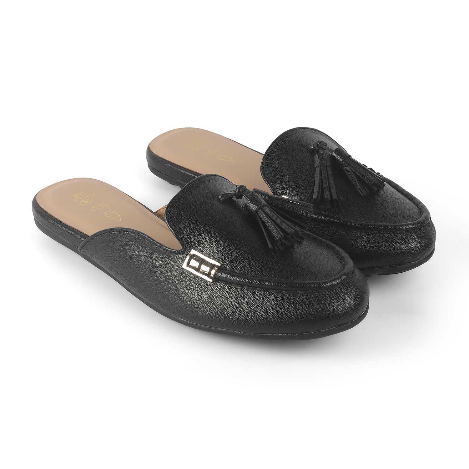 Tresmode Amassle Black Women's Dress Tassel Mules