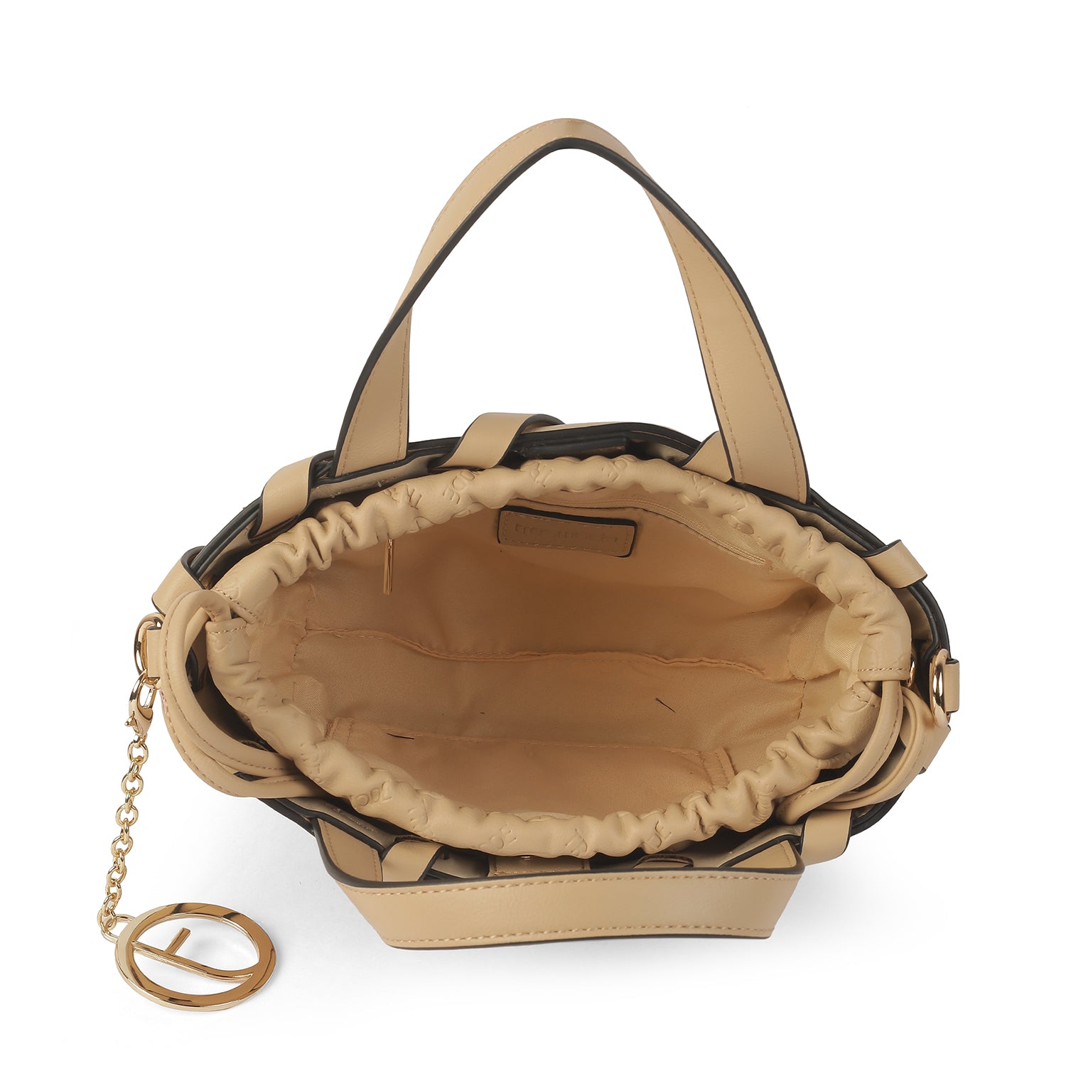 Designed for the modern woman, our Amendo beige sling bag is a must-have! With a timeless criss-cross pattern, this vegan-friendly sling bag is spacious and stylish. This bag will make a great addition to your collection. Whether it is a shopping day out or a weekend outing, this bag will enhance your overall look.