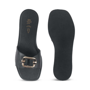 Be the next trend-setter by adding our Ancona black casual flats for women to your collection! This vegan-friendly pair is for the modern women on-the-go, as it has a premium metallic buckle and a classic design. Whether it is a casual outing or a shopping day, these TPR sole flats will be your style partner. Complete your look by pairing these flats for women with your favourite dress.