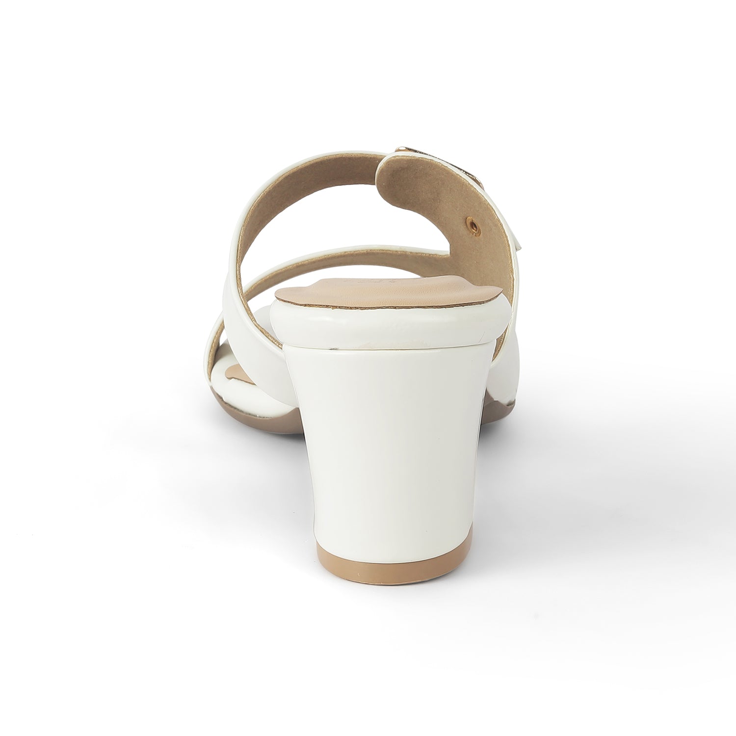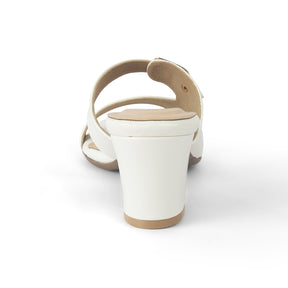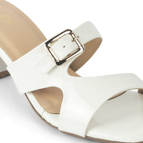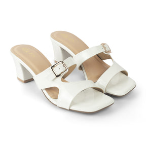 Our Andal white block heel sandals are charming and sophisticated. With a 2-inch heel height, metallic buckle, and a glossy-finish, these sandals for women are all you need for that perfect party look, as they blend fashion and functionality. For your weekend staycation, style these sandals with a dress and accessorize it up.