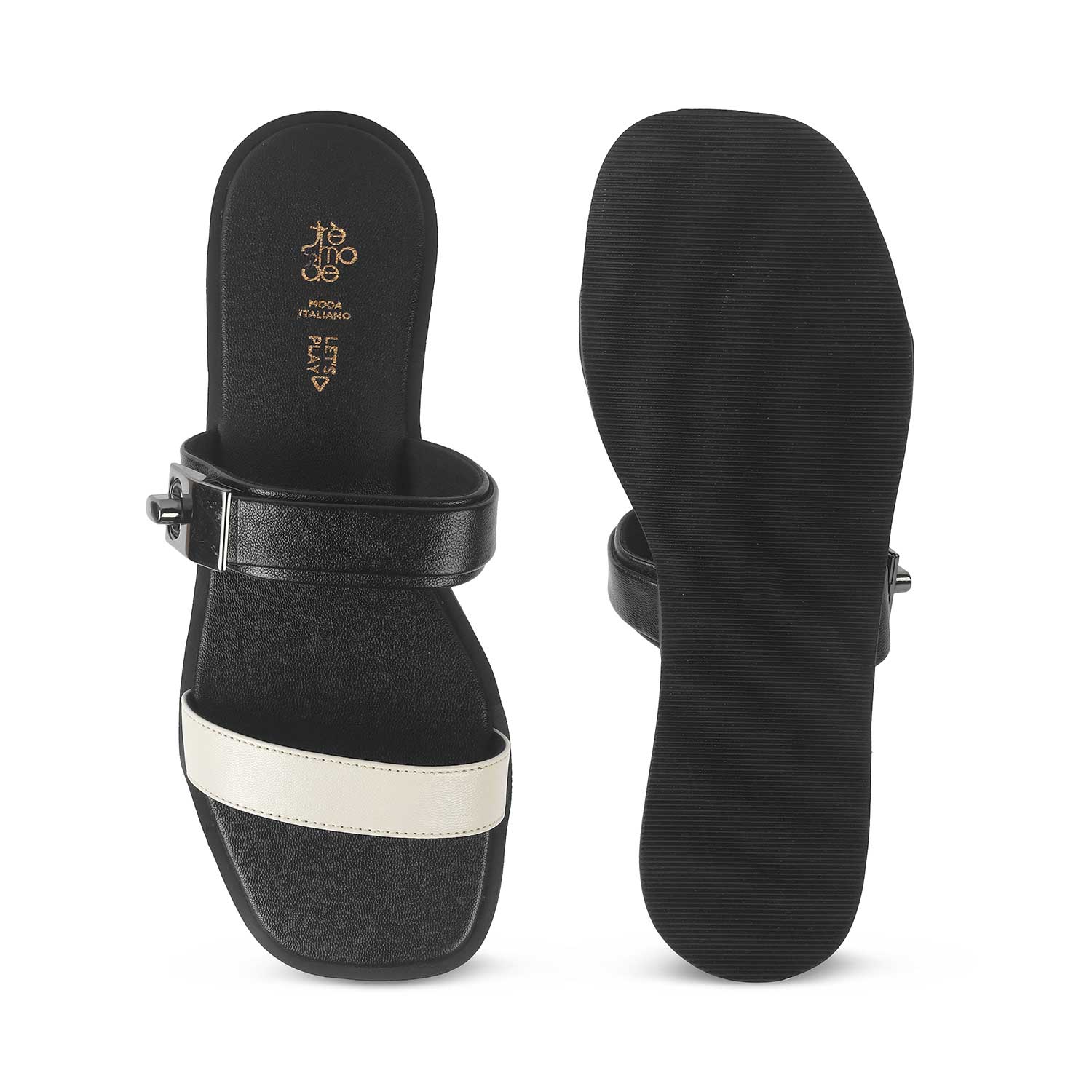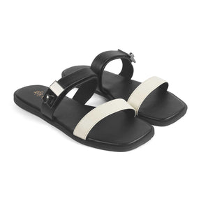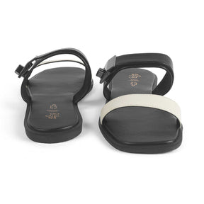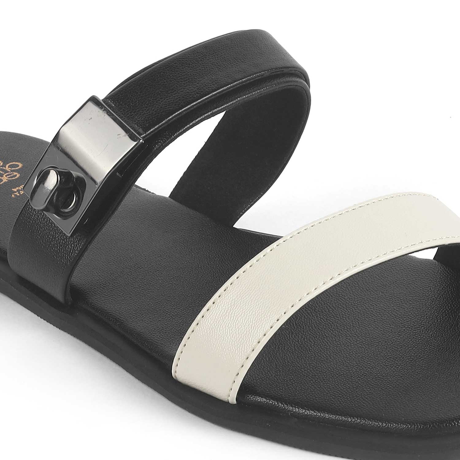 Give your style game an instant lift by getting our Andira cream flat sandals for women for yourself! With a dual-tone colour, a trendy metallic strap, and a modern design, these flats will be your go-to. Created from premium vegan-friendly material, this pair has a TPR sole for utmost comfort. Get your everyday look on point by teaming these flats for women with your casual dress.