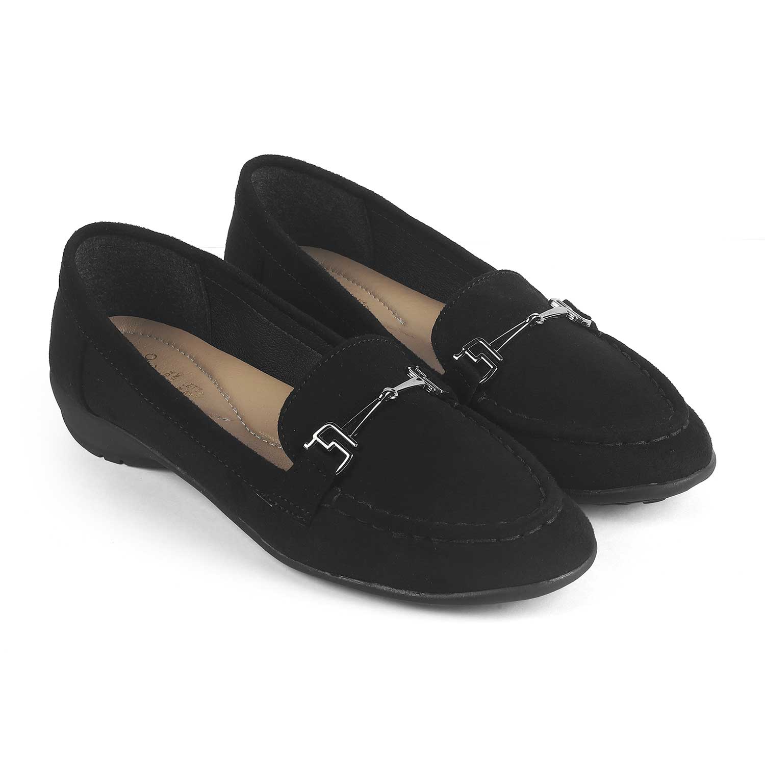 Take every step in style by adding our Angie black to your everyday collection. Created from vegan-friendly leather and featuring a metallic buckle on the upper, these modern loafer shoes are designed for women who are on-the-go. This stylish pair has a TPR sole for added comfort. For your casual outing, pair these loafers for women with a simple dress and some accessories.