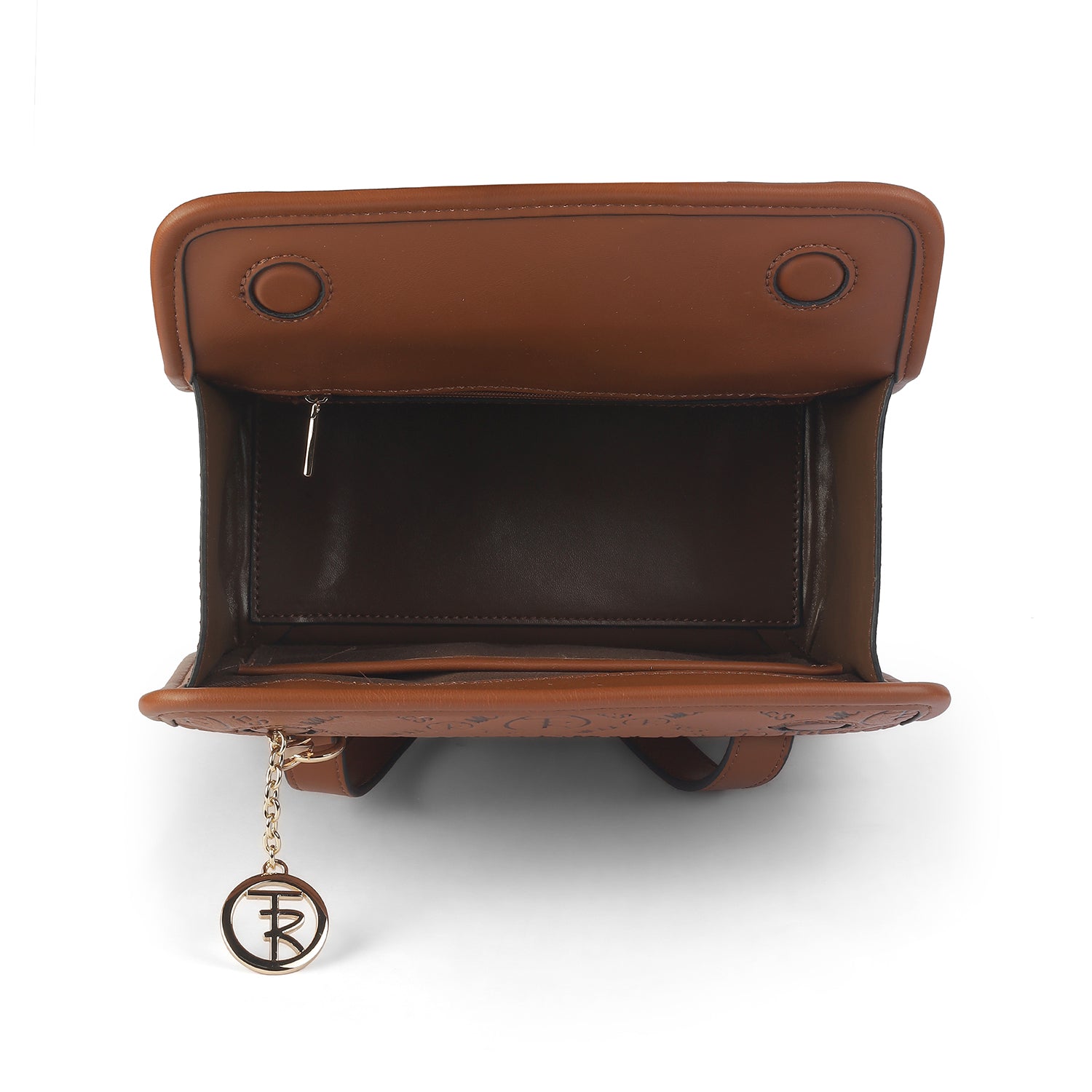 Our Babila brown is elegant, sophisticated, and easy-to-maintain – all at once. With a premium metallic buckle, this trendy sling bag is all you need to complete your weekend look. This sling bag has been carefully crafted in vegan leather and is ideal for your outings. Style your dress with a pair of block heels and carry this sling bag with you to make heads turn.