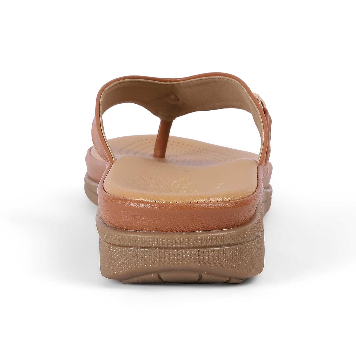 Step into comfort and style by adding our Backs tan platform flats for women to your collection! With a timeless metallic buckle belt on the upper and a 1.5–inch platform height, these flats are all you need for a comfortable casual look. This vegan-friendly pair has a cushioned foot-bed and a TPR sole for added comfort. For a daily look, style these women’s flats with your everyday outfit.