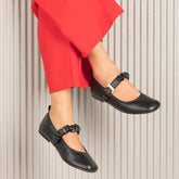Our Ballet black women’s ballerinas are both charming and comfortable! With a timeless design and wrinkled belt with a metal buckle closure, this vegan-friendly pair effortlessly blends style and practicality. For the modern women on-the-go, these TPR sole ballerina shoes are ideal for an elegant everyday look. Whether it is a Friday at work or simply a day out, pair your casual outfit with these ballerinas.