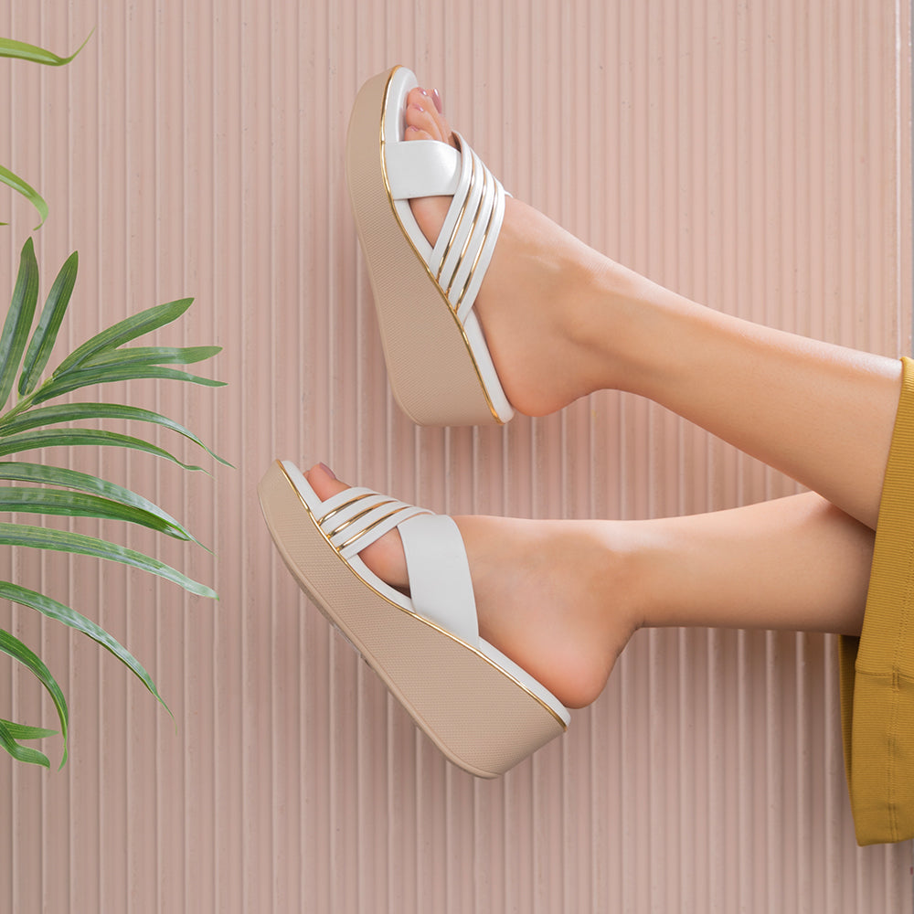 If you are looking for the perfect pair of wedges, our Boise white is the one! With a 7.6-cm wedge height and a modern design, this vegan-friendly pair strikes the perfect balance between style and practicality. These wedges for women have a TPR sole for added comfort. Upgrade your party looks by adding these premium wedge sandals to your collection.