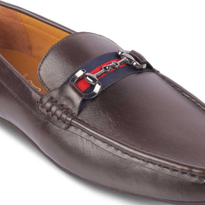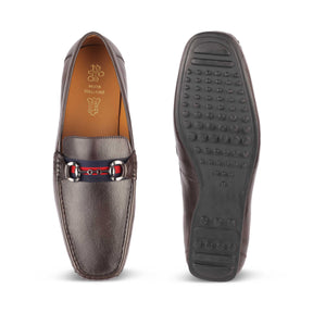 Elevate your style game with our Bilbao brown men’s leather loafers. Made for the modern man who is looking for footwear that strikes the perfect balance between style and elegance, these loafer shoes with a TPR sole are your answer! With a classic metallic buckle on the upper, these sophisticated shoes have been crafted in premium genuine leather. Put your formal look together by pairing these shoes with your office wear.