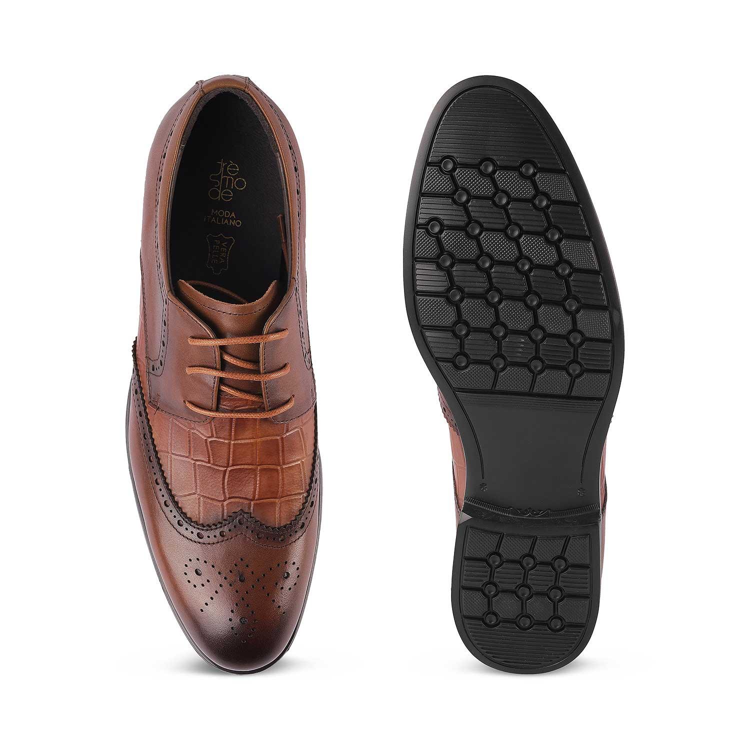 Elevate your formal look with our Cent brown men’s oxford brogue lace ups. With a sophisticated brogue design, these lace ups for men are carefully crafted in premium genuine leather. Whether it is a corporate meeting or an event night, these TPR sole lace ups will help you ace your look! Team these men’s shoes with a formal outfit for a boardroom meeting.
