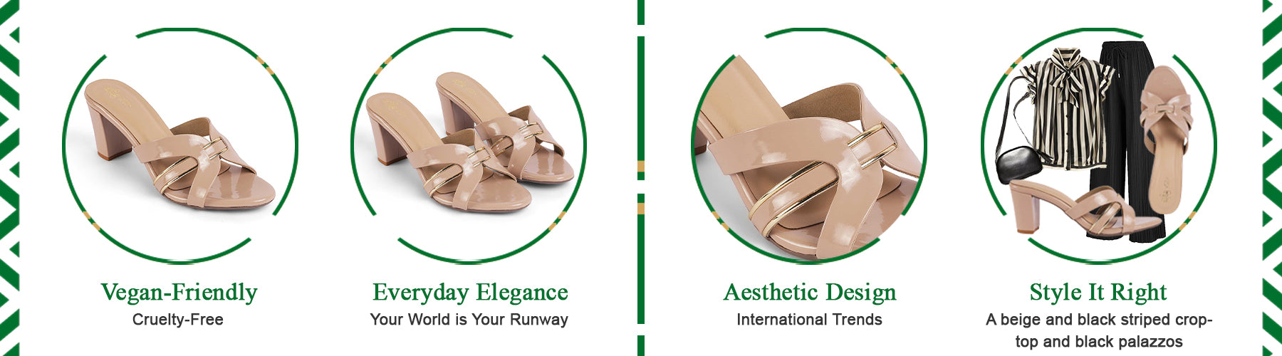 Transform your party and weekend staycation looks with our Ceskomara beige block heel sandals. With an 8.8-cm heel height, a fashion-forward design and a glossy-finish, this lovely pair will help you steal the limelight and how. These chic heels are created with care from top-notch quality vegan-friendly leather. Upgrade your style game by adding this pair to your collection.