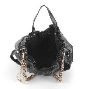 A classic black sling bag is a must-have, and our Comasina black is sophisticated and fashion-forward. Featuring a golden metallic chain that adds a style quotient, this sling bag has been created from high-quality vegan leather and is ideal for parties and date nights. Put your party look together and carry this sling bag with you.