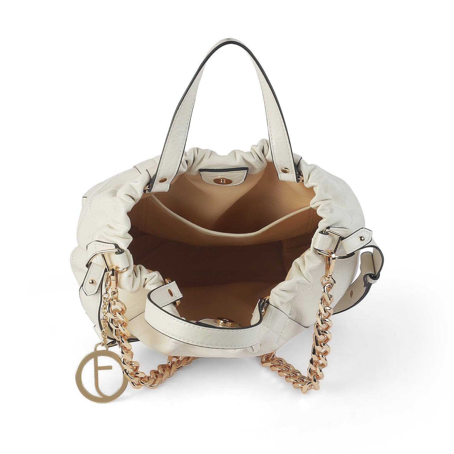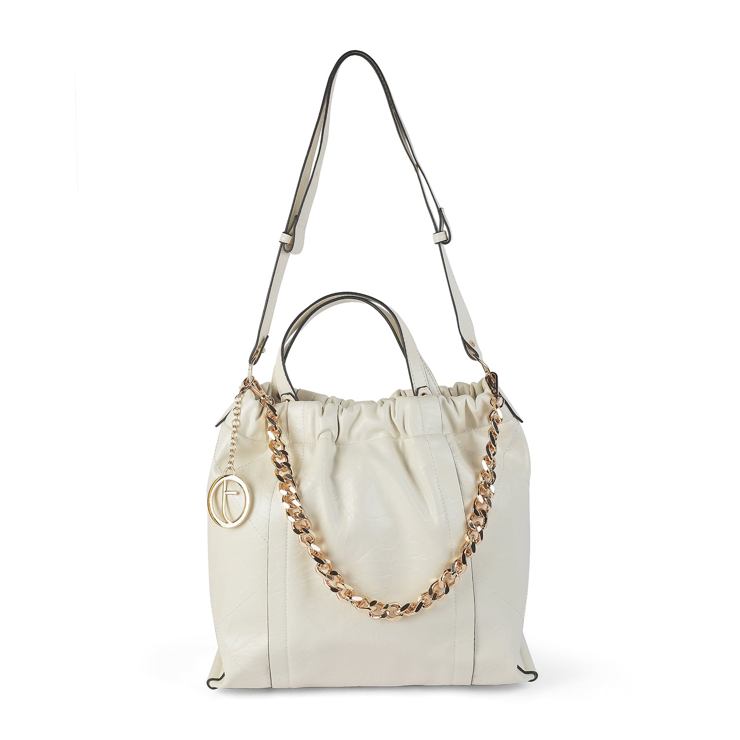 A classic white sling bag is a must-have, and our Comasina white is sophisticated and fashion-forward. Featuring a golden metallic chain that adds a style quotient, this sling bag has been created from high-quality vegan leather and is ideal for parties and date nights. Put your party look together and carry this sling bag with you.