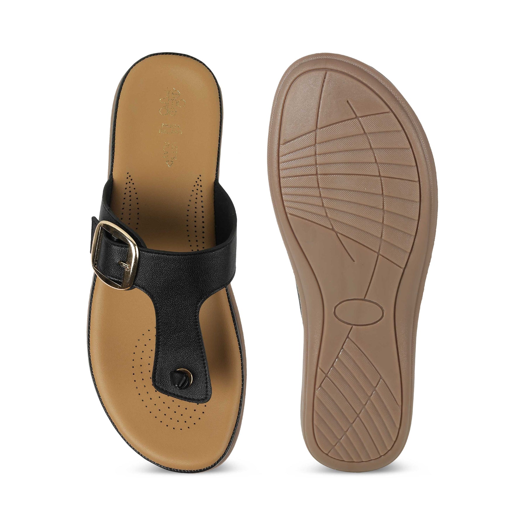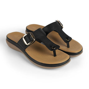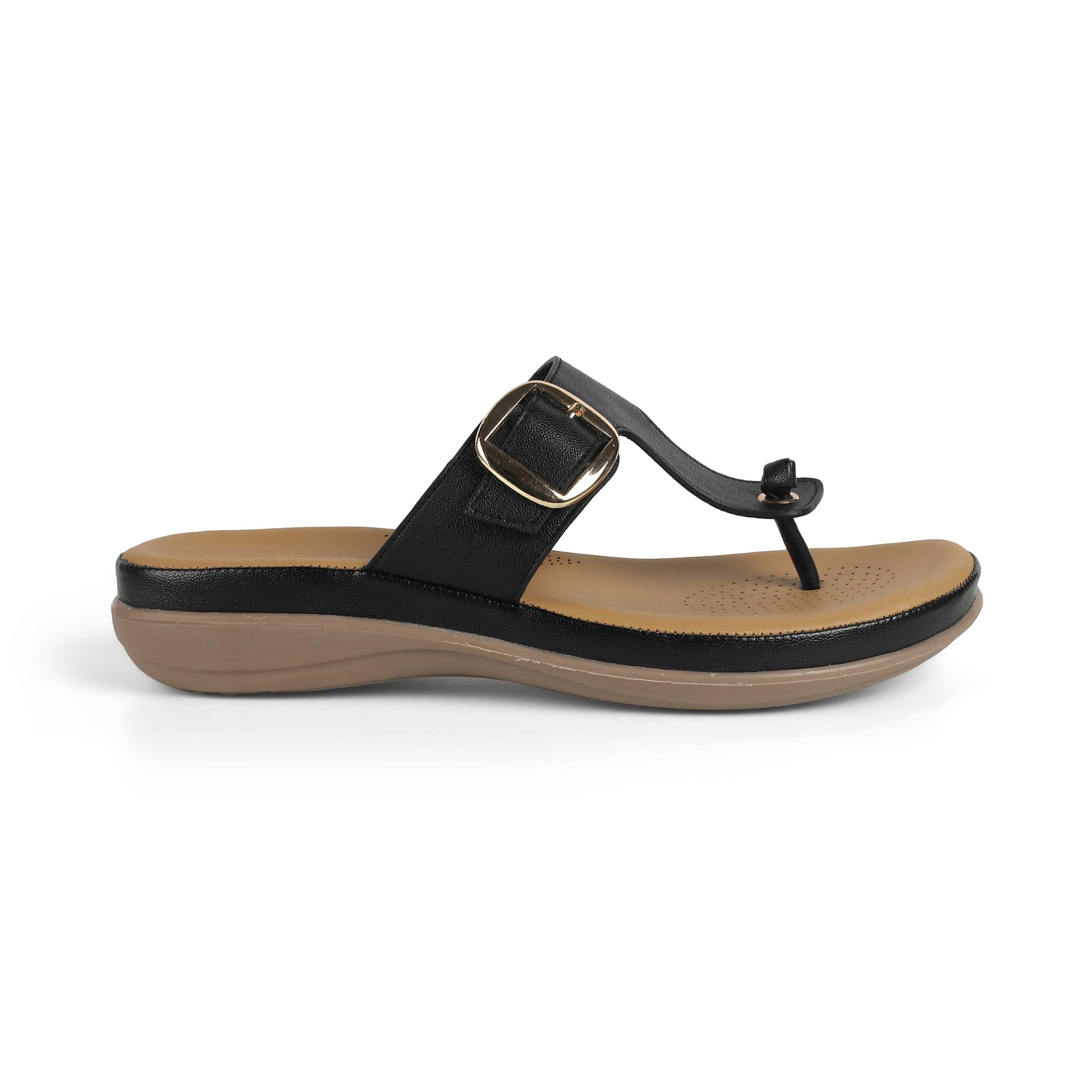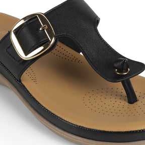 Walk comfortably in our Esop black platform flats for women. With a 5-cm platform height, a timeless design with a metallic buckle, and a cushioned foot-bed, these flats offer everything that you deserve! This versatile pair has a TPR sole for utmost comfort. Redefine your look by teaming these Tresmode shoes with a casual outfit for your daily look.