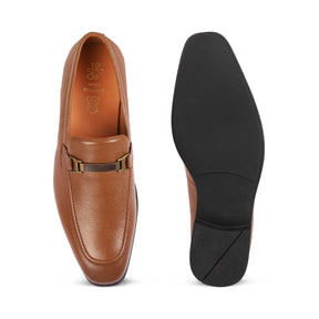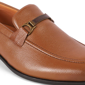 Elevate your formal attire by adding our Even tan men’s leather loafer shoes. Crafted in premium genuine leather, these loafers for men have a metallic buckle belt on the upper. This elegant pair has a TPR sole to offer added comfort. For a work event, style these shoes with a formal outfit and be a class apart.