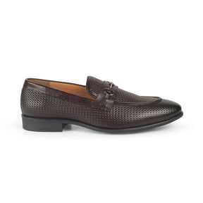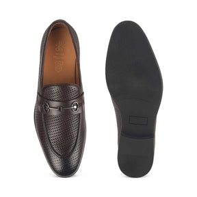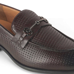 Introducing our Fetch brown leather loafers for men! This sophisticated pair has a textured pattern and a metallic buckle, which makes it a must-have for that perfect formal look. Crafted in premium genuine leather, these loafers for men have a TPR sole for added comfort. For a boardroom meeting, pair these loafers with a formal outfit and look dapper.