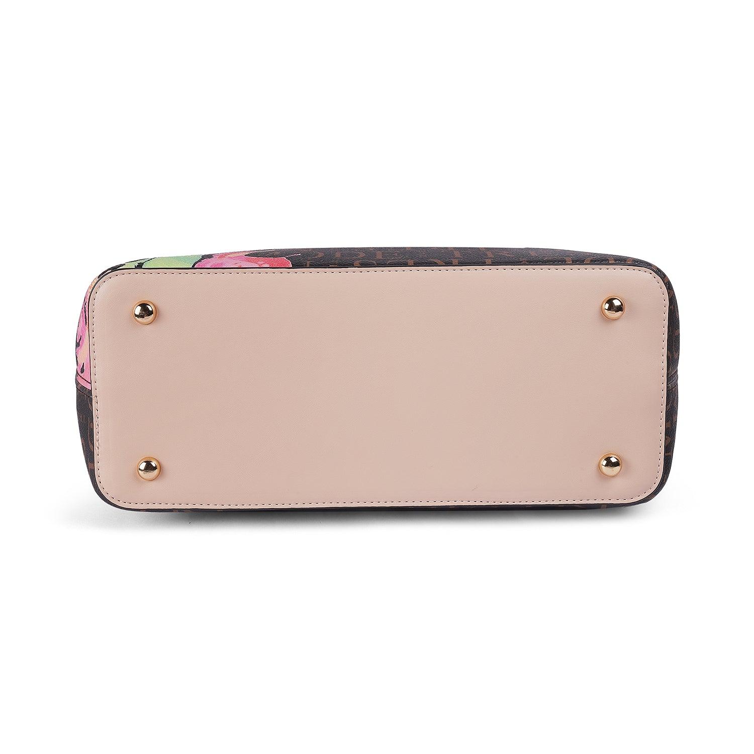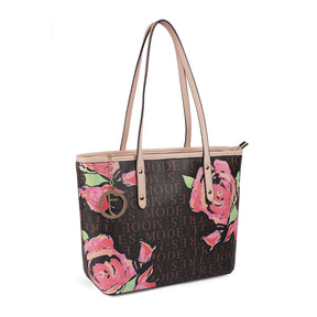 Transform your collection of bags by adding our Floral Brown women's handbag. This bag has our logo along with a beautiful floral design on the textured vegan leather handbags. With three compartments inside, two of them have open pockets and another one has a zip, this bag will surely keep your everyday essentials intact like an ipad, makeup products, and a small wallet. For your weekend getaway, take this bag along with you to showcase your great choice.