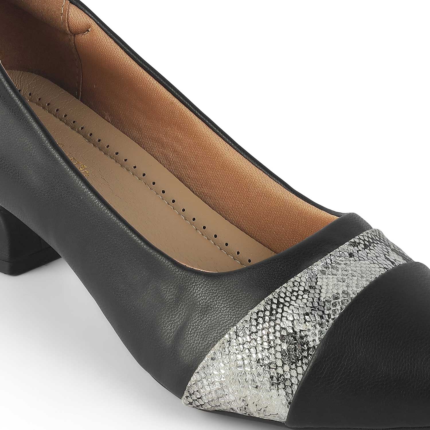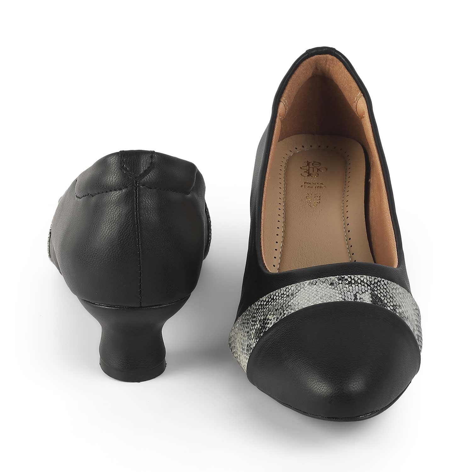 Revamp your entire look by adding our Frankfort black kitten heel pumps for women. With a trendy croc-embossed design on the upper and a 3.8-cm heel, these pumps are here to help you make a style statement. This pair is created with care from vegan-friendly material and has a TPR sole. Whether it is a work event or a party, style your outfit with these pumps.