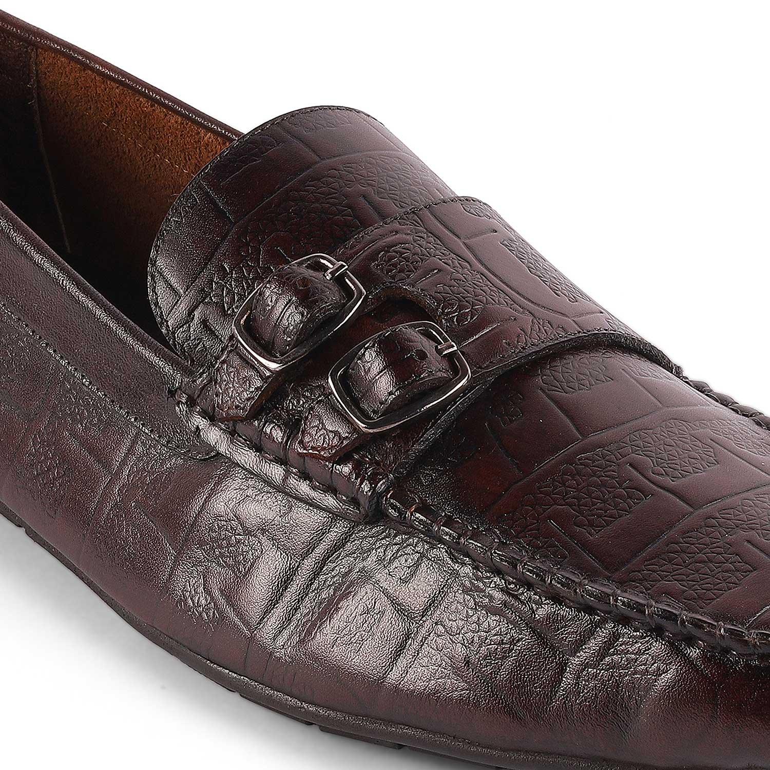 Versatile and comfortable are the two words that define our Gioia Brown double monk shoes for men. With a classic double monk design and modern textured-pattern leather, these shoes for men are the ultimate must-haves. Crafted in premium genuine leather, these shoes have a TPR sole. Put your work look together by pairing these double monk shoes with a formal outfit.