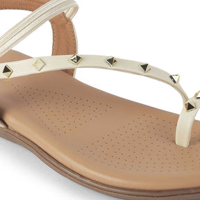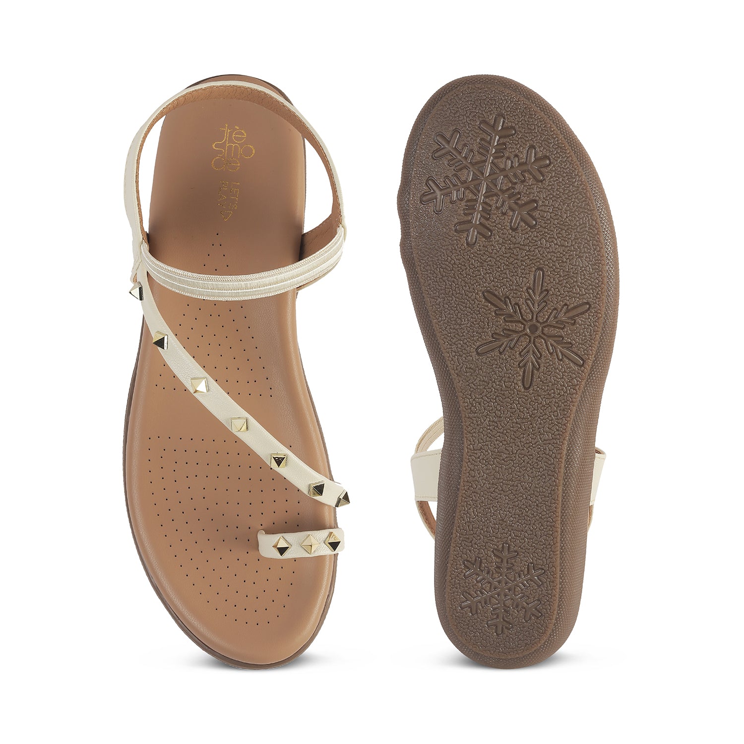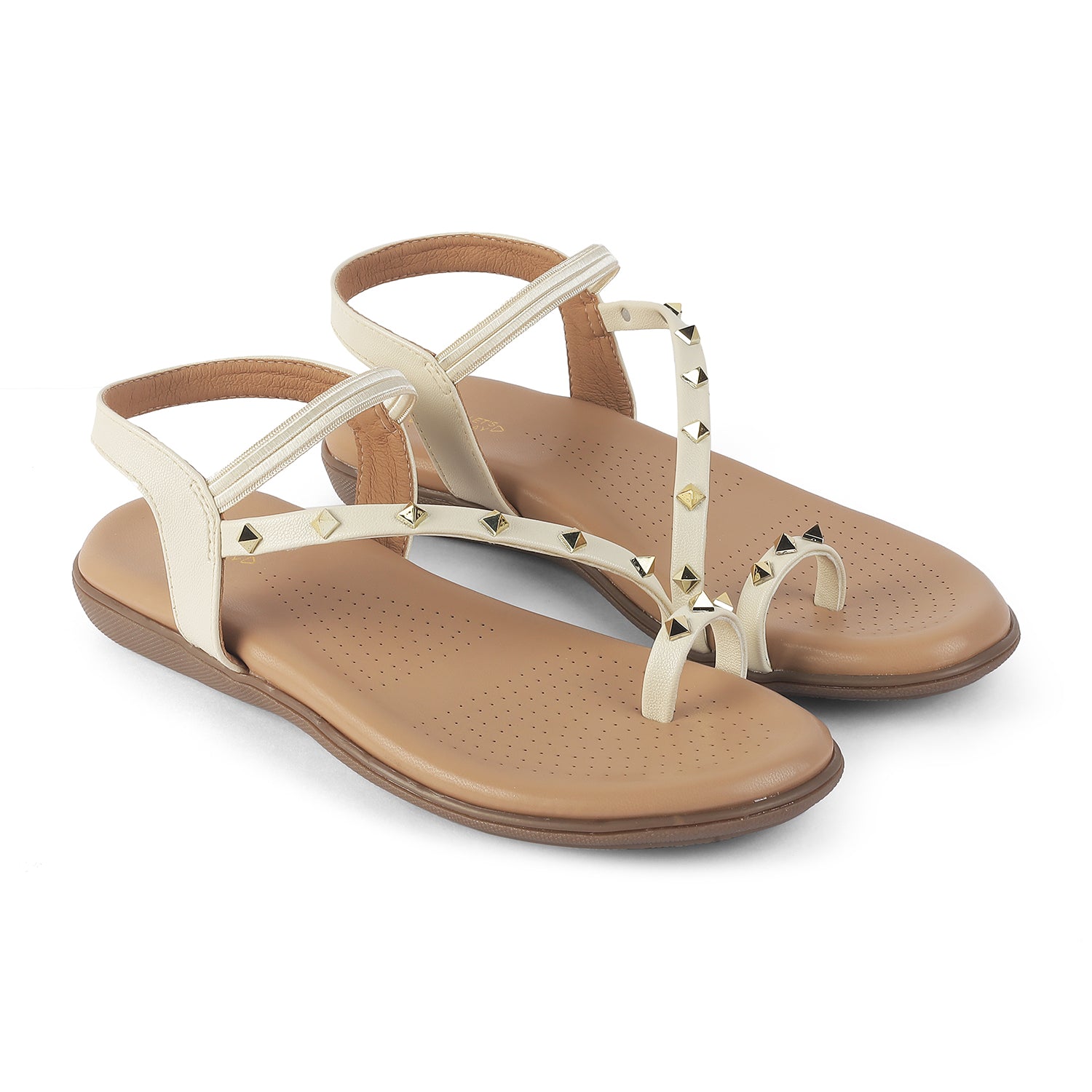 If you are ready to upgrade your everyday style, our Hastud cream flats for women are the one for you! This versatile pair has classic golden studs and an adjustable strap for a great fit. This pair is vegan-friendly and has a TPR sole for utmost comfort. Style these comfortable flats with a casual outfit for your daily look.