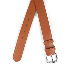 Get your formal look on point by adding this Leonardo Tan men's leather belt to your collection. With a silver metallic buckle for the perfect closure, this belt is sophisticated and timeless. This belt has been crafted in premium genuine leather men's belt material to ensure that you don’t have to compromise on quality at all. Ideal for your formal ensemble, this belt is a must-have. For a boardroom meeting, pair this belt with your outfit and look dapper.
