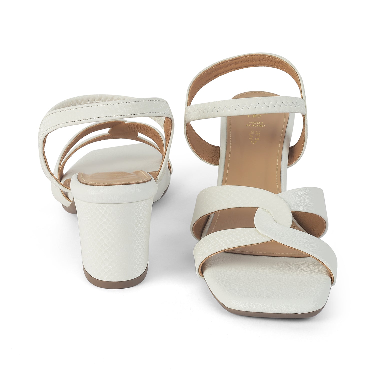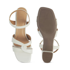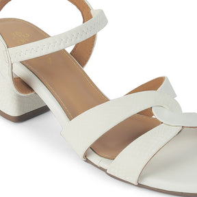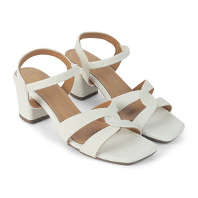 Tresmode Leros White Women's Dress Block Heel Sandals