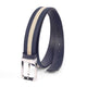 Ace your casual look by getting yourself the Lincoln blue men's leather belt. With a fashion-forward dual-toned colour combination and a timeless style metallic buckle, this genuine leather men's belt will be your go-to for a dashing look. Created from premium genuine leather, our belt is long-lasting and will add that style quotient to your entire look. For a laid-back look on a Friday at work or a weekend staycation, this leather belt for men is a must-have. Complete your weekend getaway look by pairing your outfit with this belt and a smartwatch.
