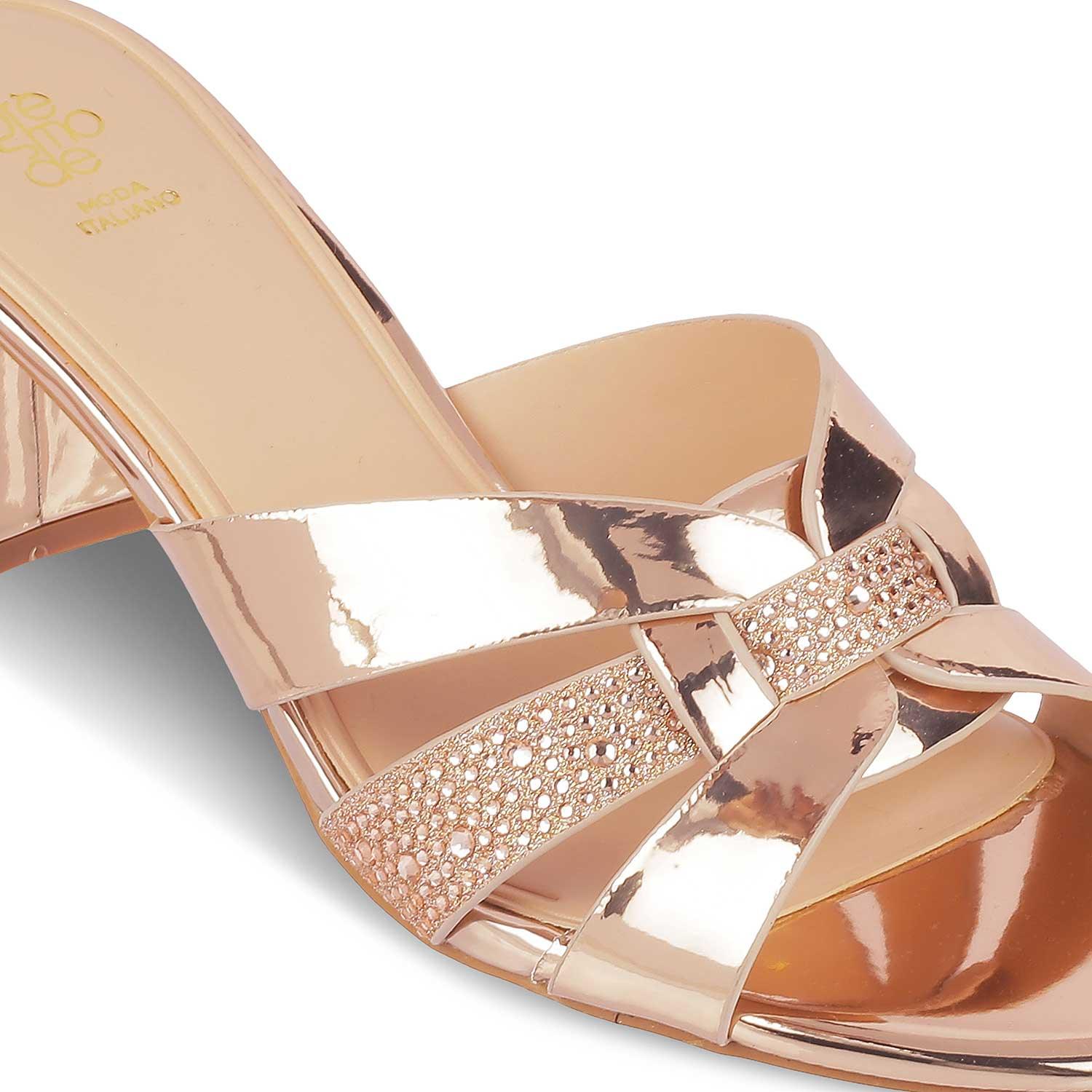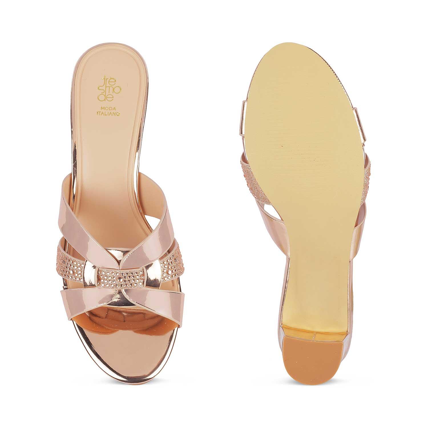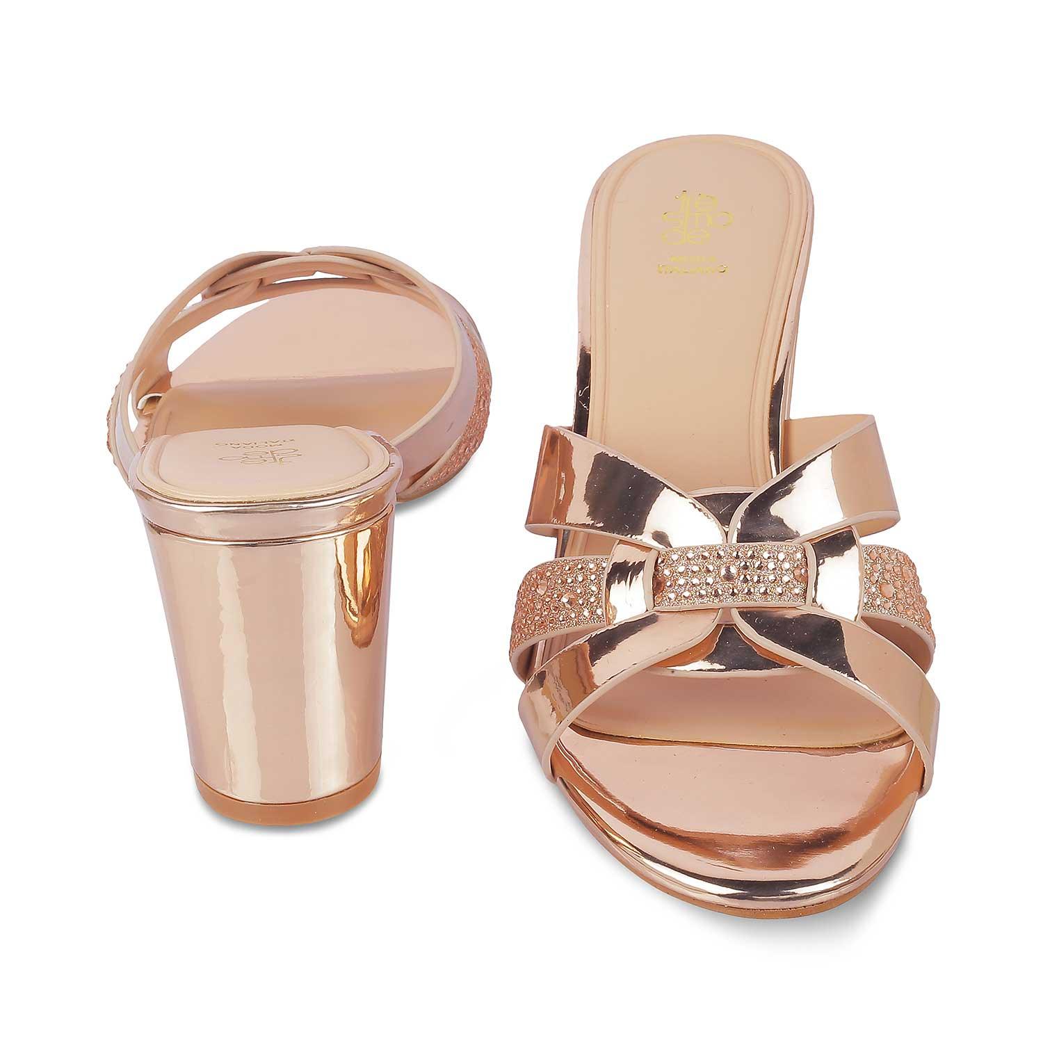 Tresmode Luxe Champagne Women's Dress Block Heel Sandals