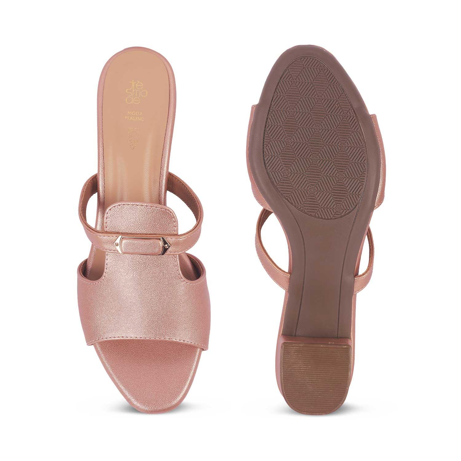 Revamp your entire look by adding our Marsh champagne heel sandals to your collection. With a sturdy 5-cm heel and a sophisticated design, these sandals for women will win your heart instantly. Make a style statement effortlessly by teaming this gorgeous pair with your favourite dress and some accessories. This pair is ideal for your casual outings as well as your date nights. Get all set to leave a lasting impression!