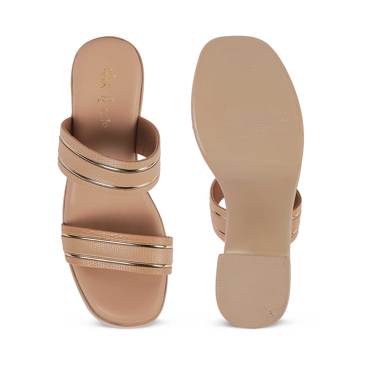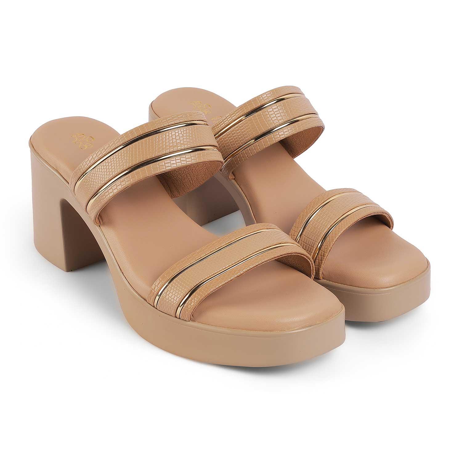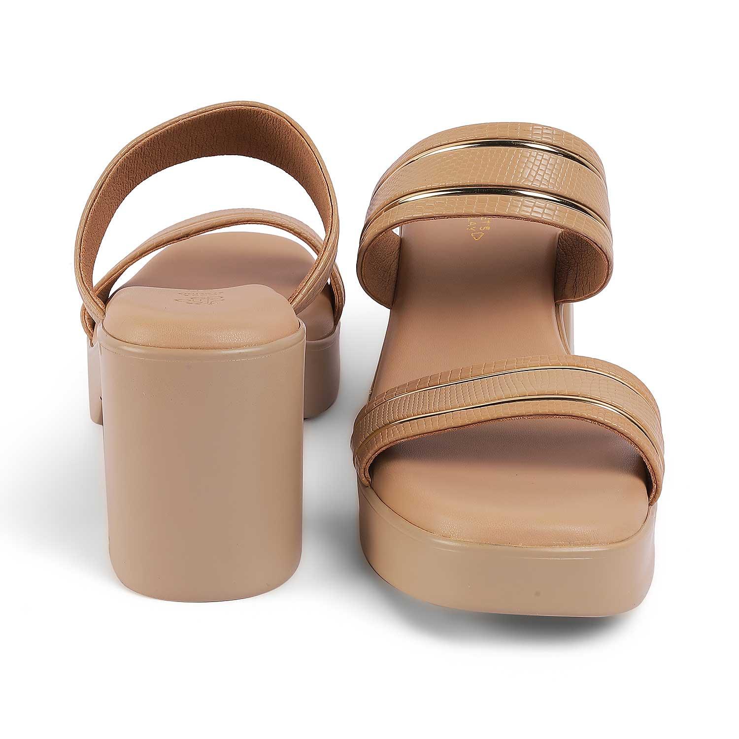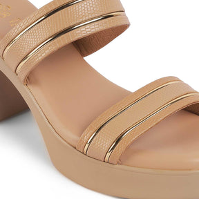 Tresmode Mauro Beige Women's Dress Block Heel Sandals