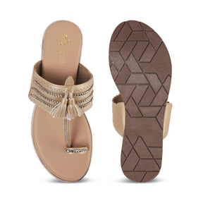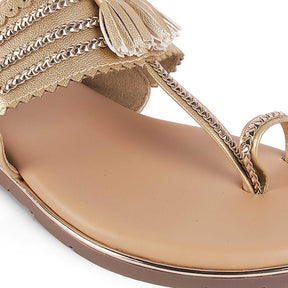 Our Mekol gold will help you enhance your Indo-western and festive looks! With a timeless design and tassels on the upper, this vegan-friendly pair will be your go-to for that perfect ethnic look. With a TPR sole for utmost comfort, these flats for women are created from premium vegan-friendly material. Make a style statement by pairing your Indo-western outfit with these women’s flats.