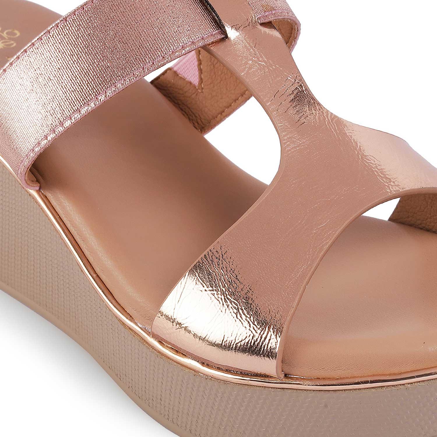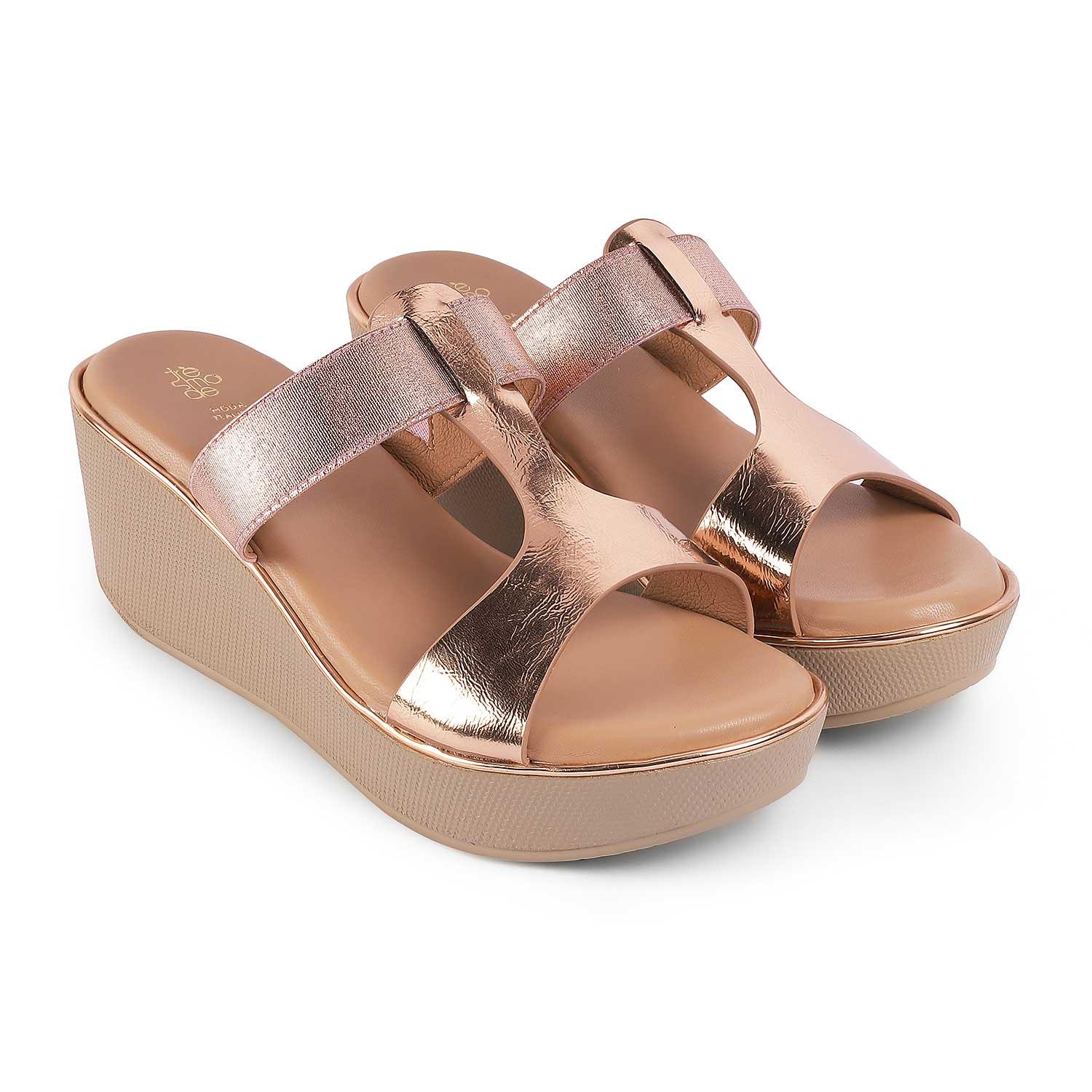 Tresmode Miglo Champagne Women's Dress Wedge Sandals
