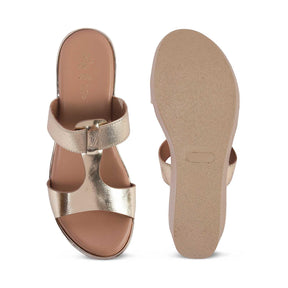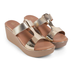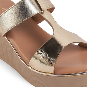 Tresmode Miglo Gold Women's Dress Wedge Sandals
